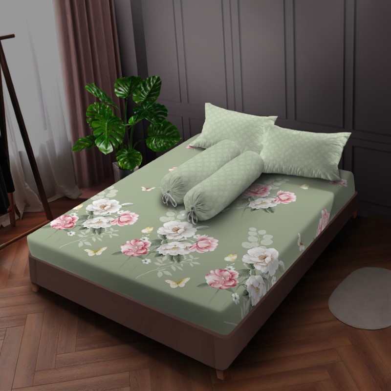 Kintakun Sprei Fitted 160/180/200 Damara Bunga Dluxe Microtex Hijau
