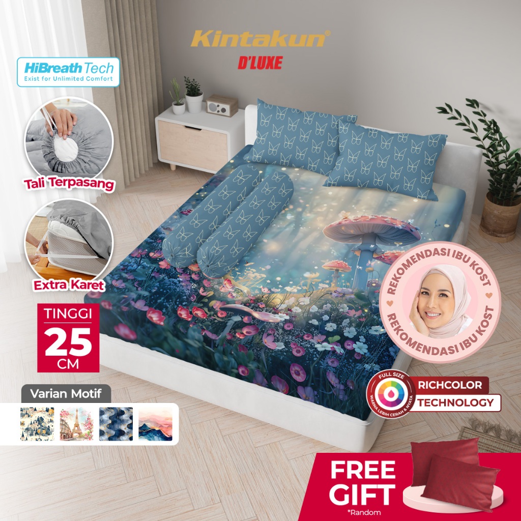 Kintakun Sprei Set 120/160/180 Fitted D'luxe Queen King Aesthetic Digital Printing Anti Geser T25cm
