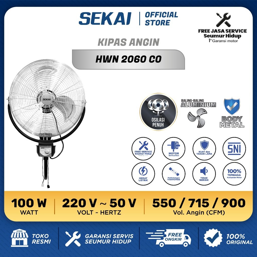 SEKAI Kipas Angin Dinding Tornado Wall Fan 18 / 20 Inch - HWN 1860 / 2060 CO