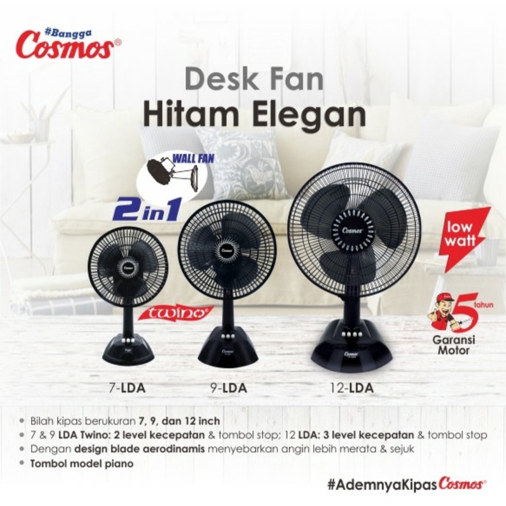 Kipas Angin Meja & Dinding Cosmos 12 LDA Twino Wall & Desk Fan Cosmos Kipas Cosmos 12 LDA