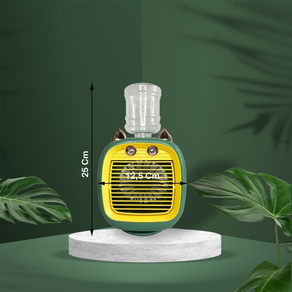 Kipas Angin Mini Portable Galon Double Spray Fan Nano Mist Rotating 3-Speed Wind Karakter Fox Lucu