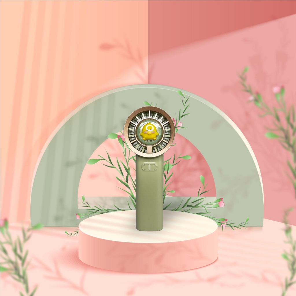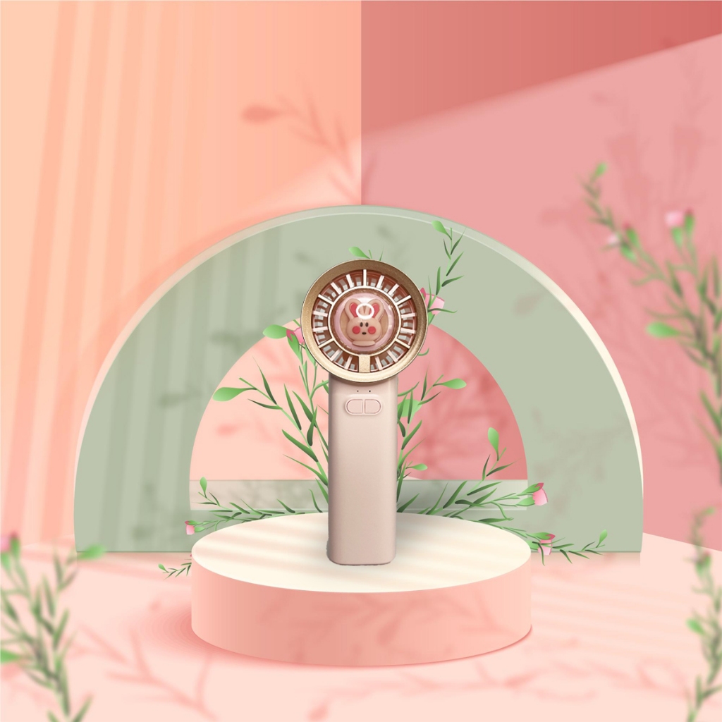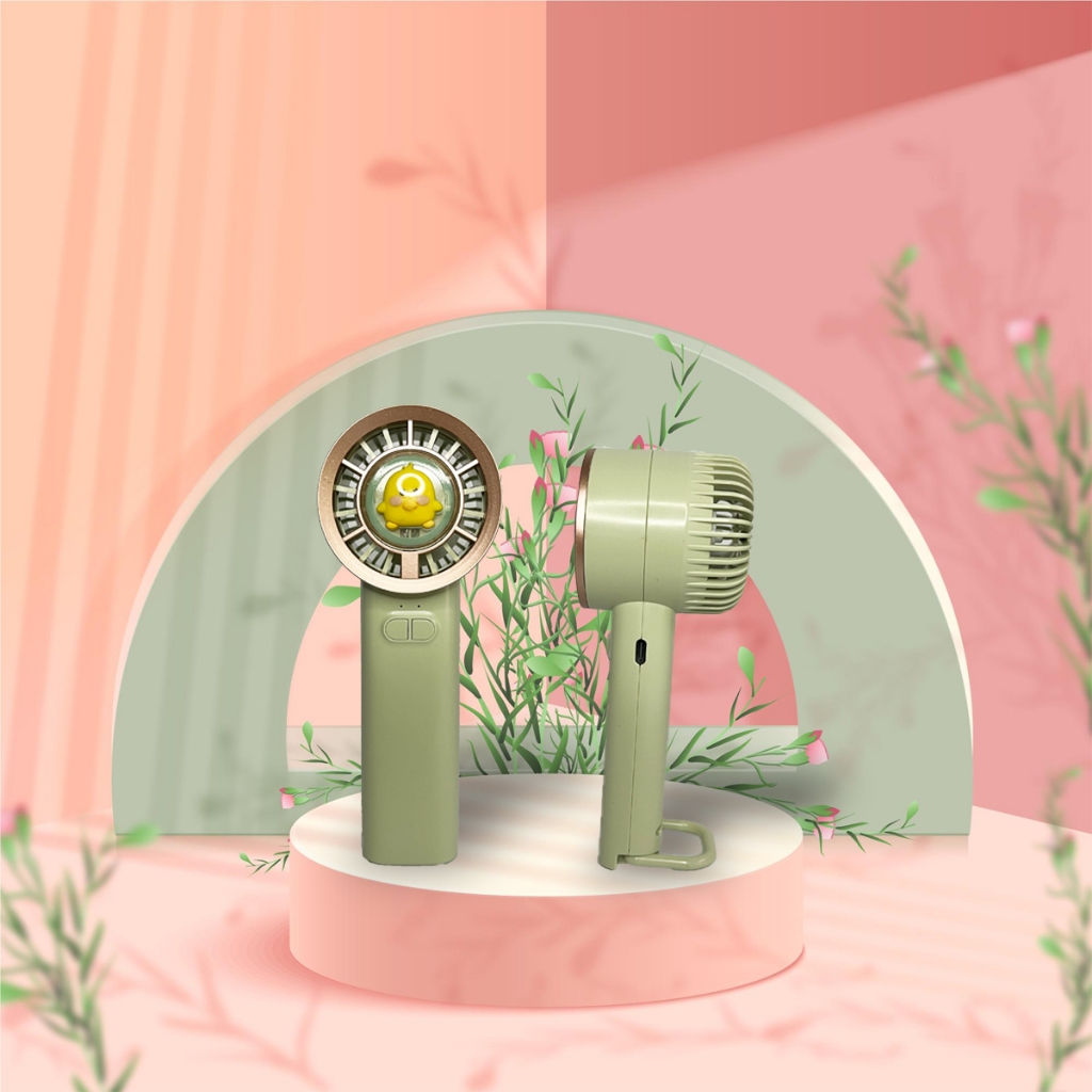 Kipas Angin Mini Portable Handheld Pocket Fan LED Light 3-Speed Wind Karakter Lucu Viral
