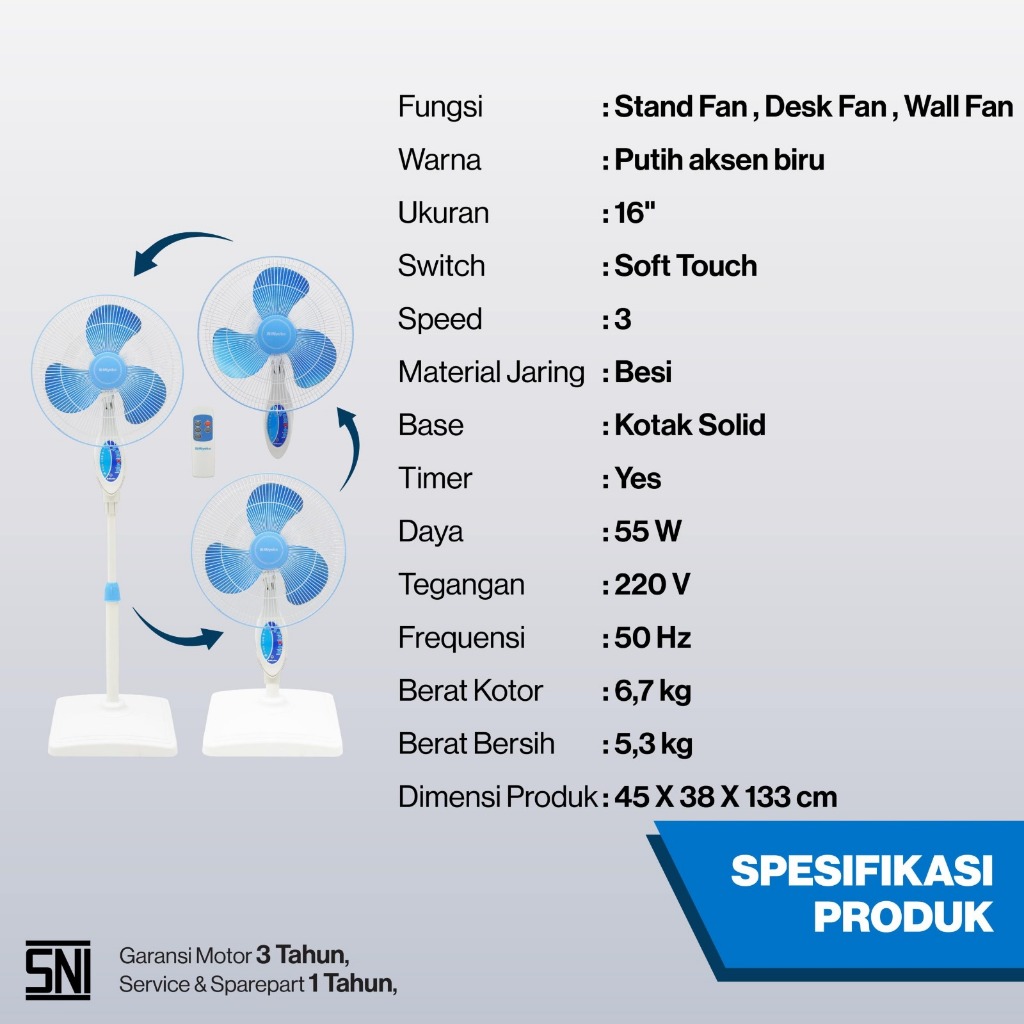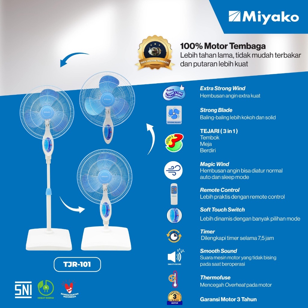 Kipas Angin Miyako TJR101GB - Biru 16 Inch - 3IN1 Kipas Meja Dinding Berdiri