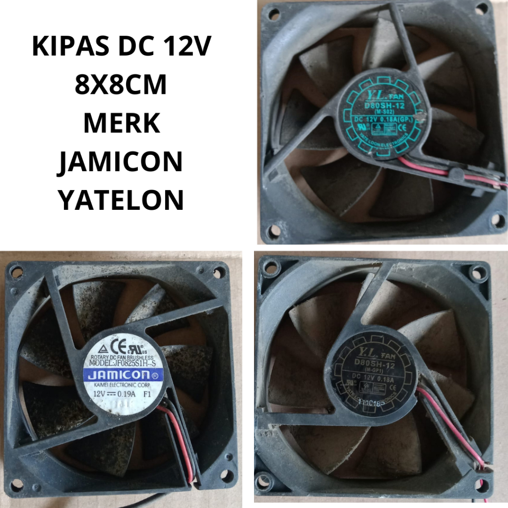 Kipas DC 12v ukuran 8x8cm kipas kotak merk jamicon, yatelon,sunon (putaran lebih kencangh dari kipas amper standar /100Ma) jamin hidup
