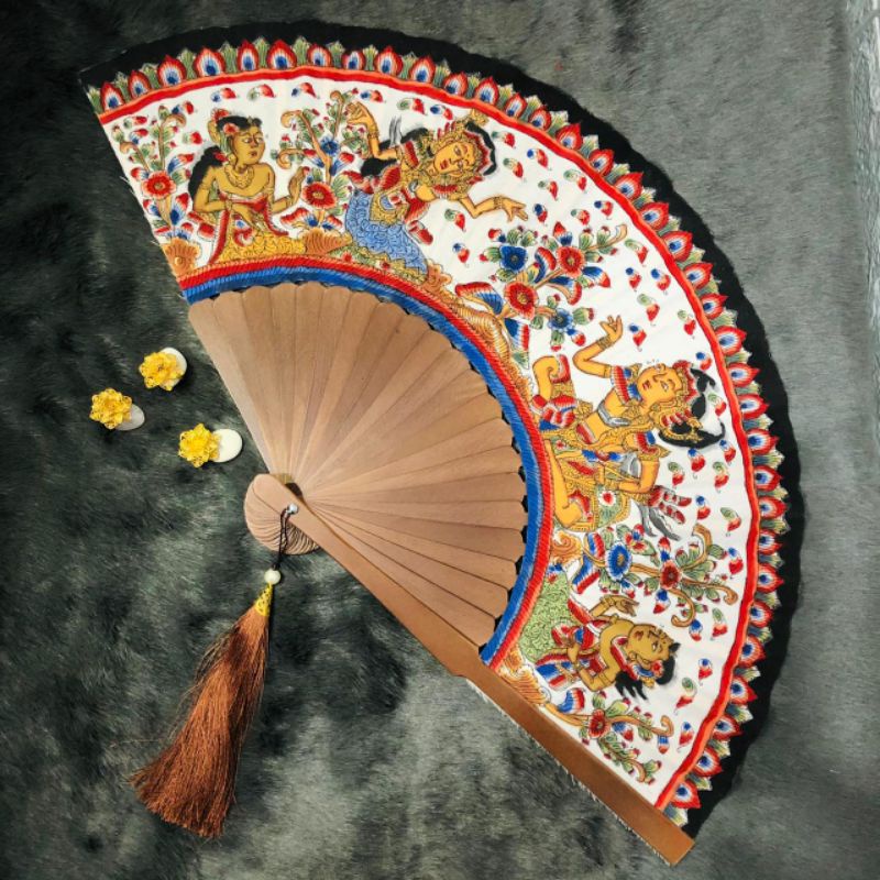 Kipas Lukis/Kipas Painting/Kipas wayang kamasan(Bisa ukir nama kamu di tangkai kipas)