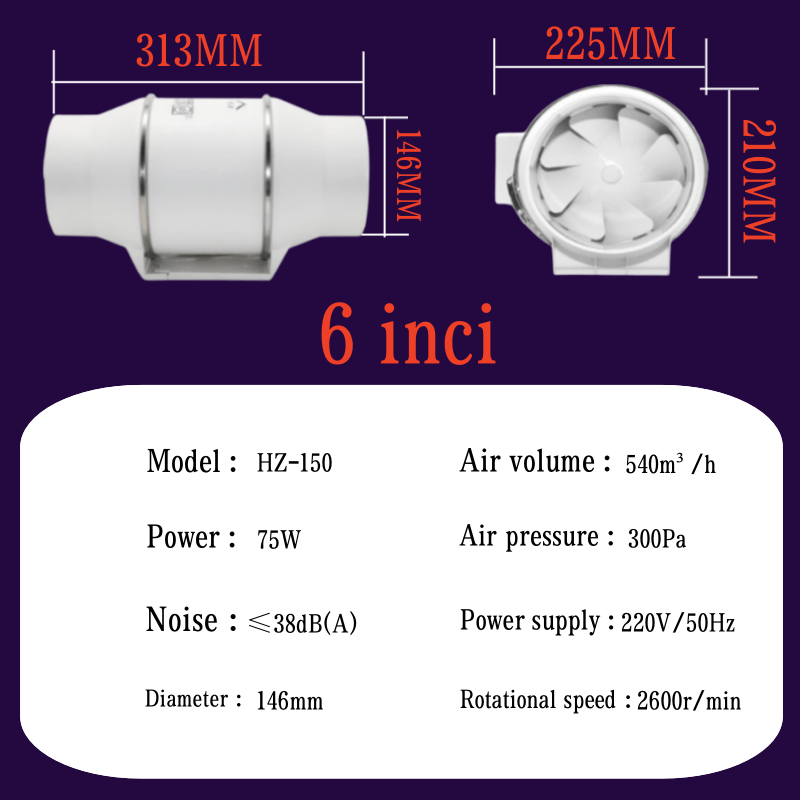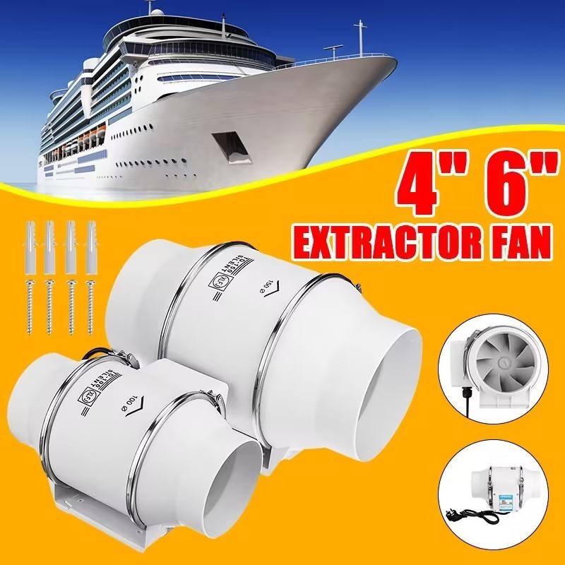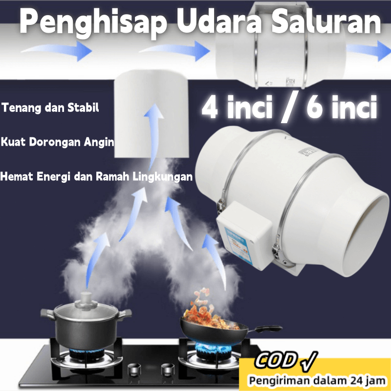 Kipas Udara Pipa Kipas Angin Penghembus Exhaust fan heksos Ducting Exhaust Fan Kipas Angin Hisap Rumah Tangga 4/6 Inci untuk Dapur dan Kamar Mandi penyedot udara dapur kipas kamar mandi dapur exsos