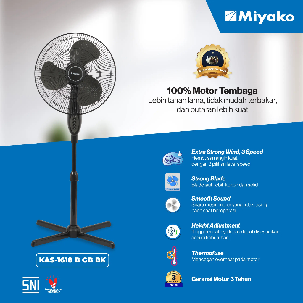 Kipas angin Miyako KAS-1618-B-GBBK - Stand Fan 16in Kaki Silang 50W Grill Besi Black