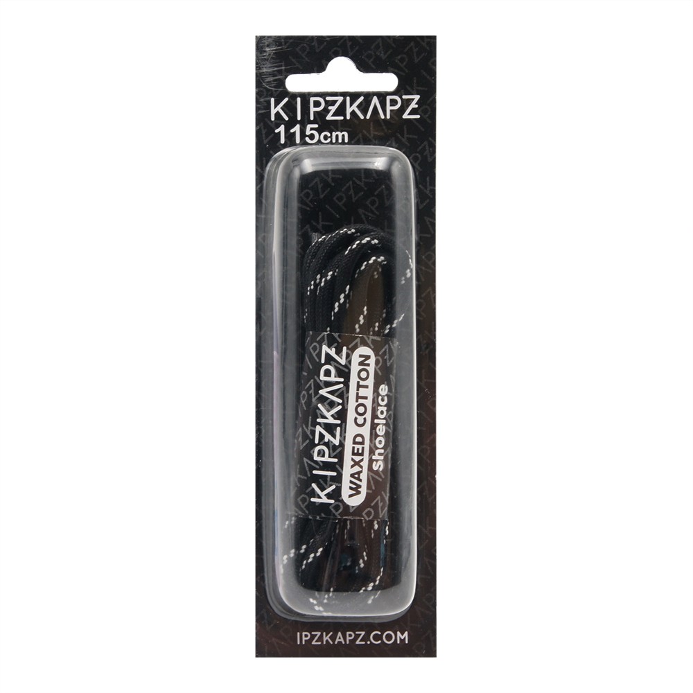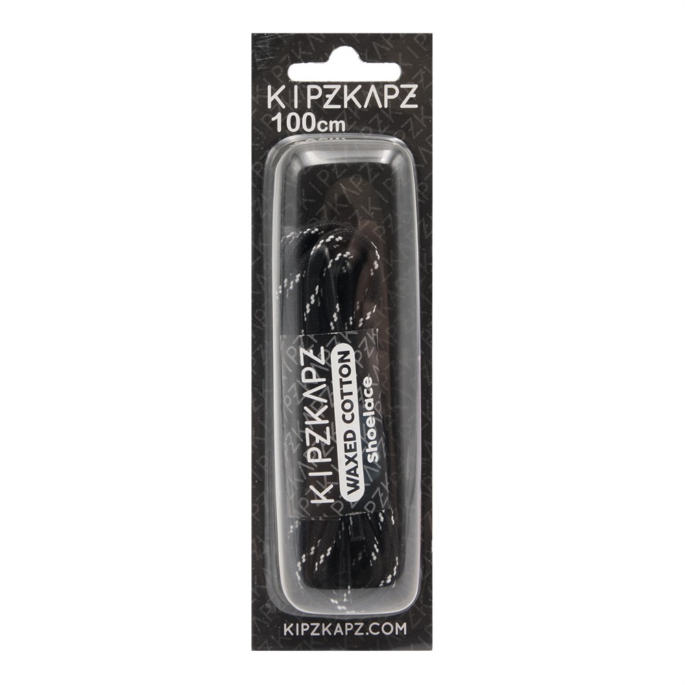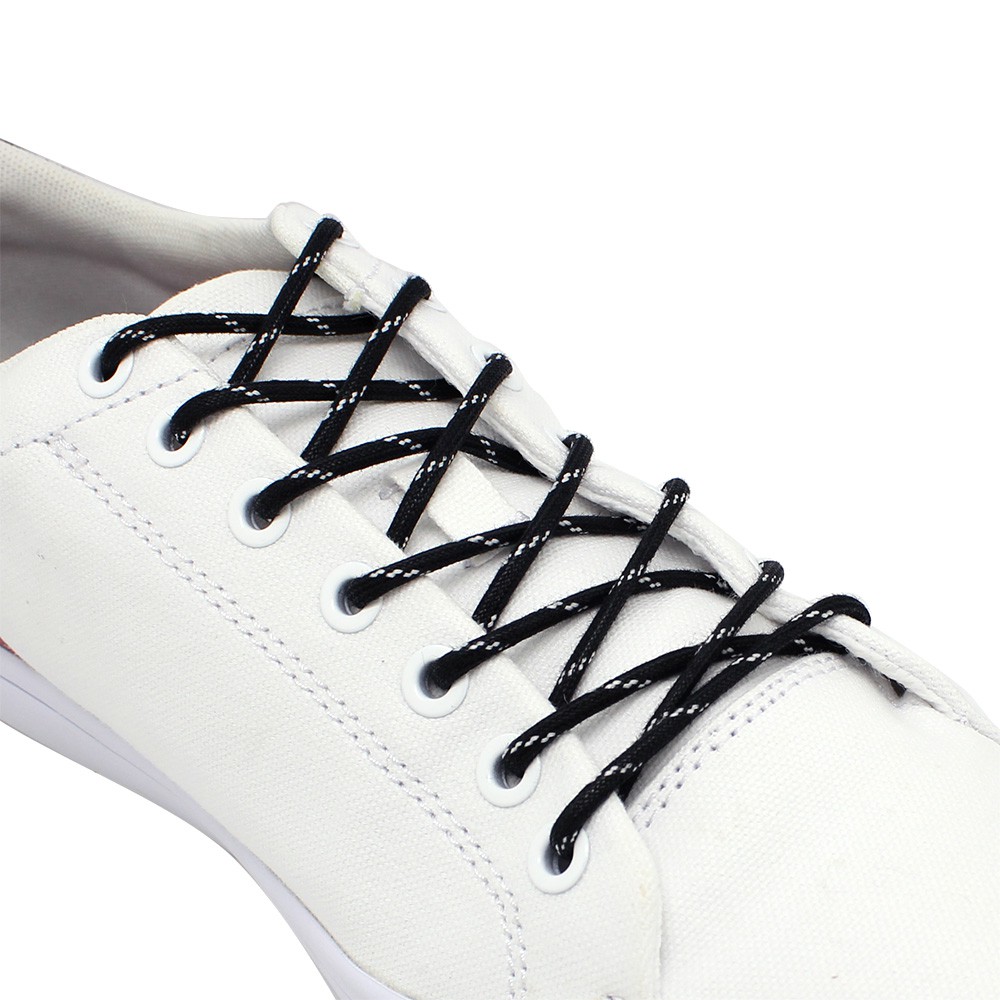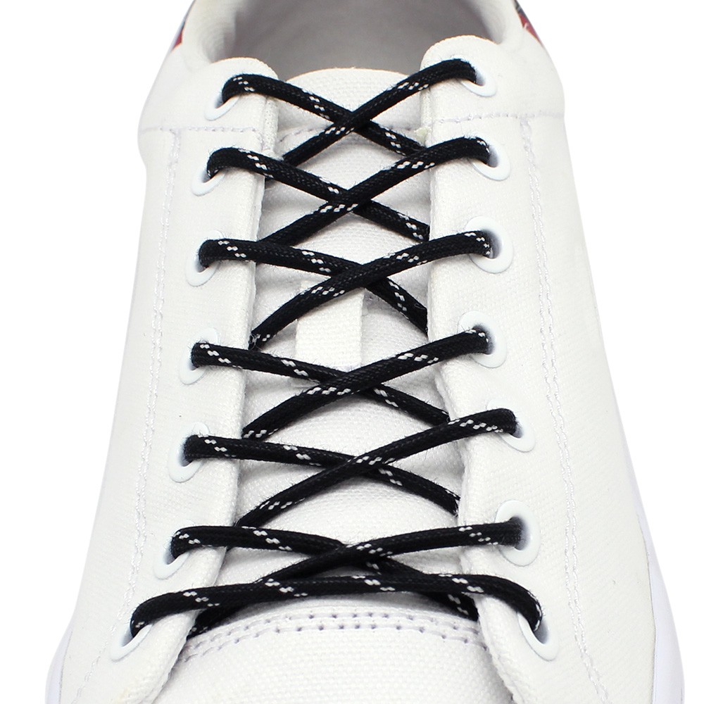 KIPZKAPZ TALI SEPATU LILIN BULAT MOTIF - ROUND WAX COTTON SHOELACE 3MM - WS27 BLACK WITH WHITE STRIPES - 60CM 80CM 100CM 115CM 140CM 160CM