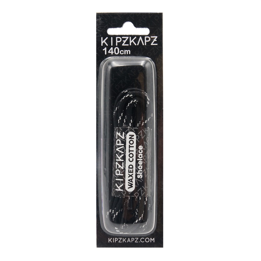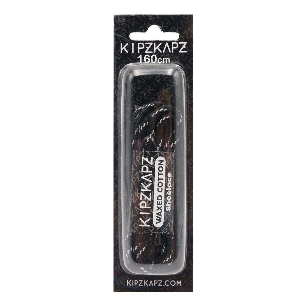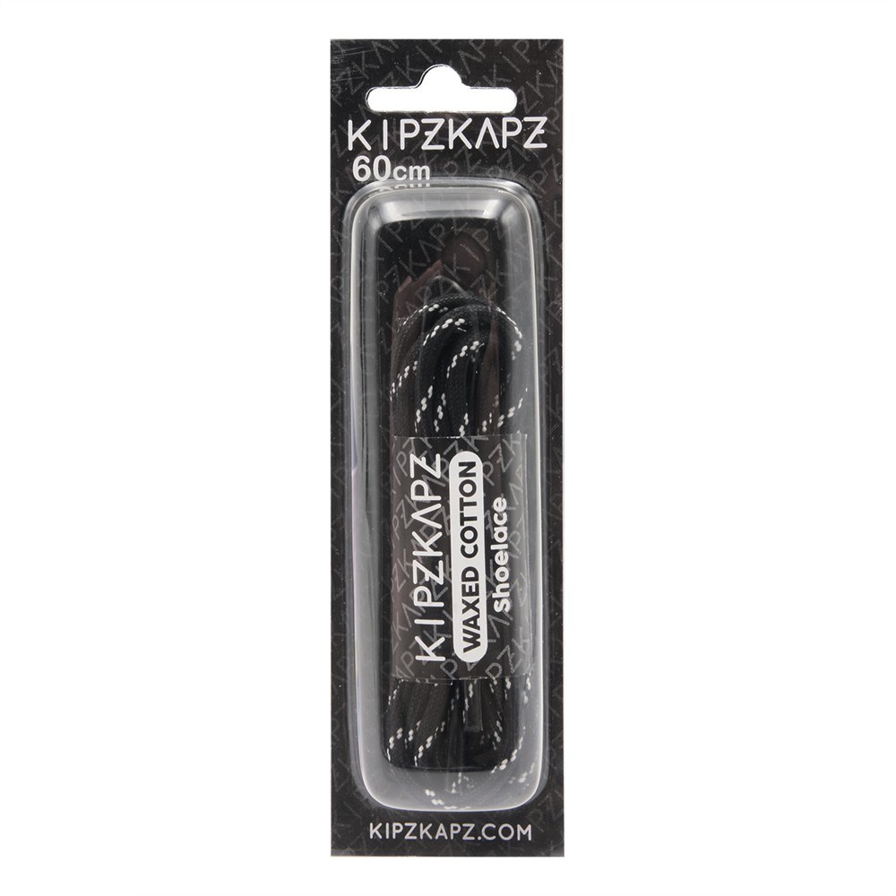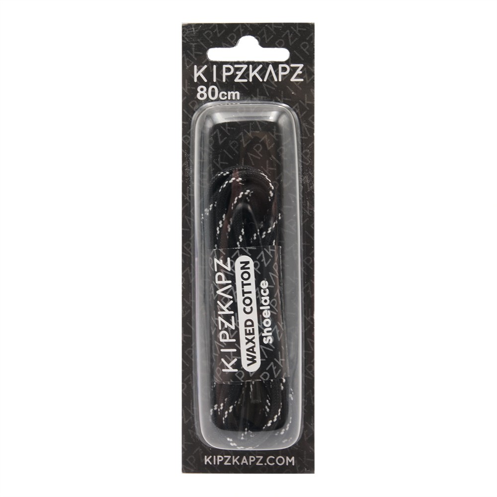 KIPZKAPZ TALI SEPATU LILIN BULAT MOTIF - ROUND WAX COTTON SHOELACE 3MM - WS27 BLACK WITH WHITE STRIPES - 60CM 80CM 100CM 115CM 140CM 160CM