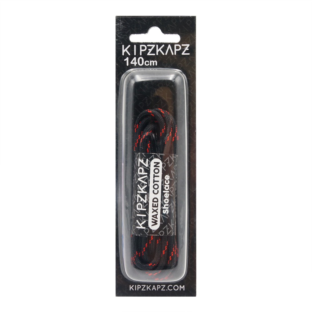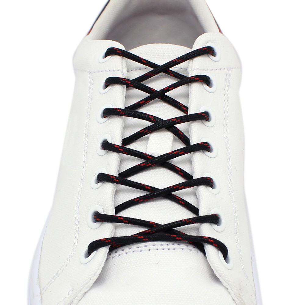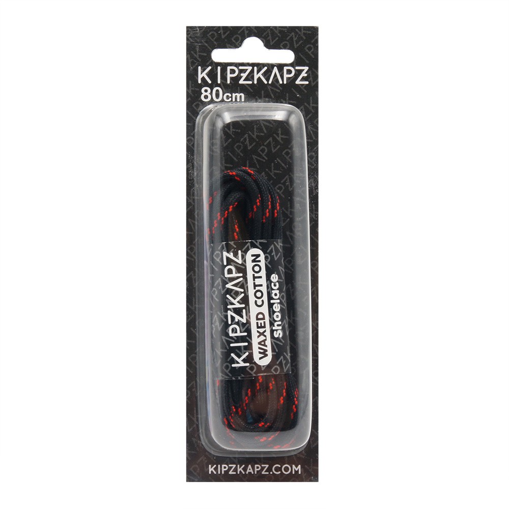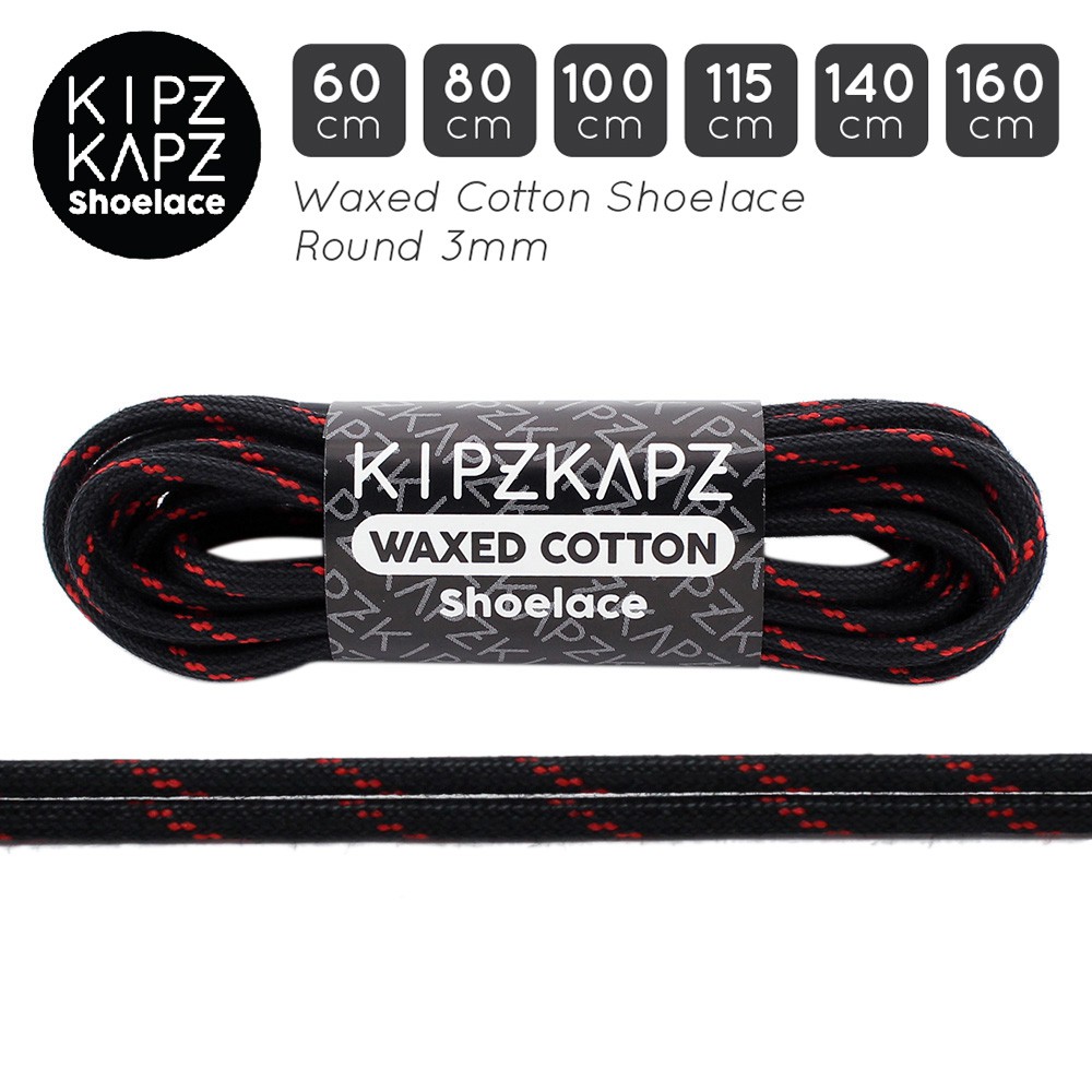 KIPZKAPZ TALI SEPATU LILIN BULAT MOTIF - ROUND WAX COTTON SHOELACE 3MM - WS28 BLACK WITH RED STRIPES - 60CM 80CM 100CM 115CM 140CM 160CM