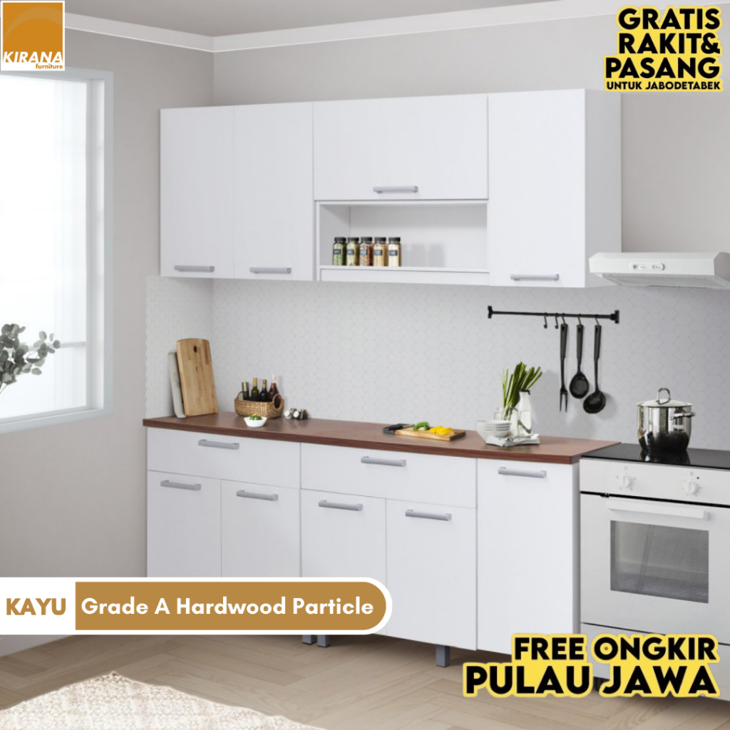 KIRANA Indiana - Kitchen Set Kayu Lemari Kabinet Dapur Rak Dapur 2 Meter Putih
