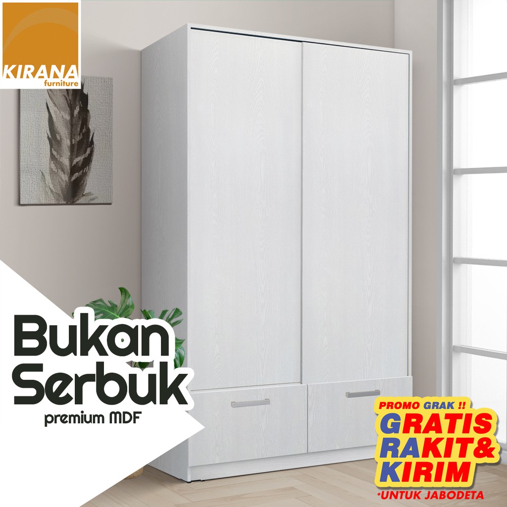 KIRANA Omaha - Lemari Pakaian Kayu 2 Pintu Sliding / Geser Wardrobe Putih Modern Minimalis