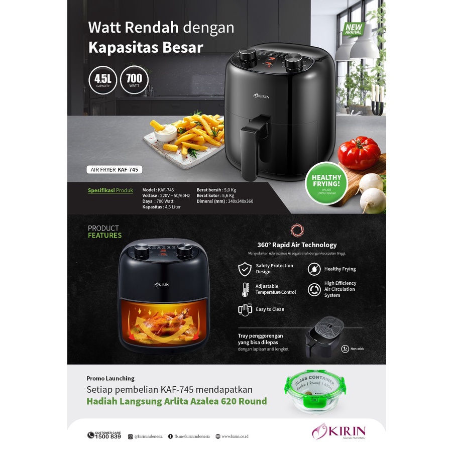Kirin Air Fryer-745 - Mesin Penggoreng Tanpa Minyak 700 watt