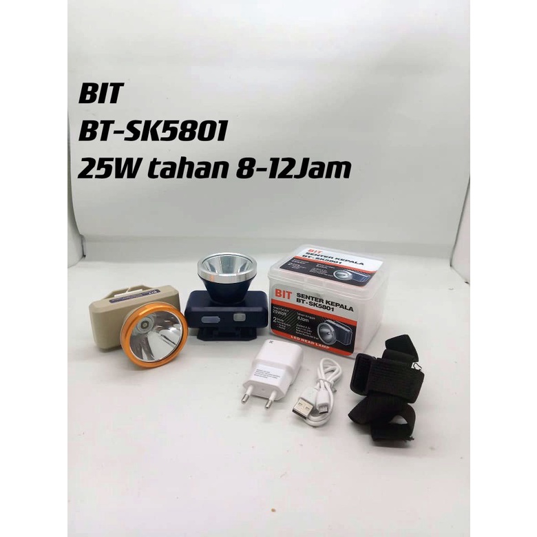 Kiseki Senter Kepala Bt-Sk5801 Senter Kepala Cahaya Putih 25w Tahan Hingga 8jam