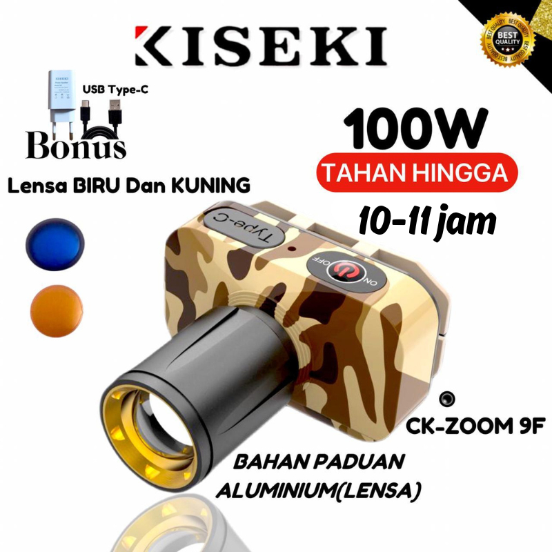 Kiseki Senter Kepala CK-ZOOM 9F 100-Watt Cahaya Putih 6000mAh Kapasitas Baterai Senter Kepala Zoom Motif Loreng