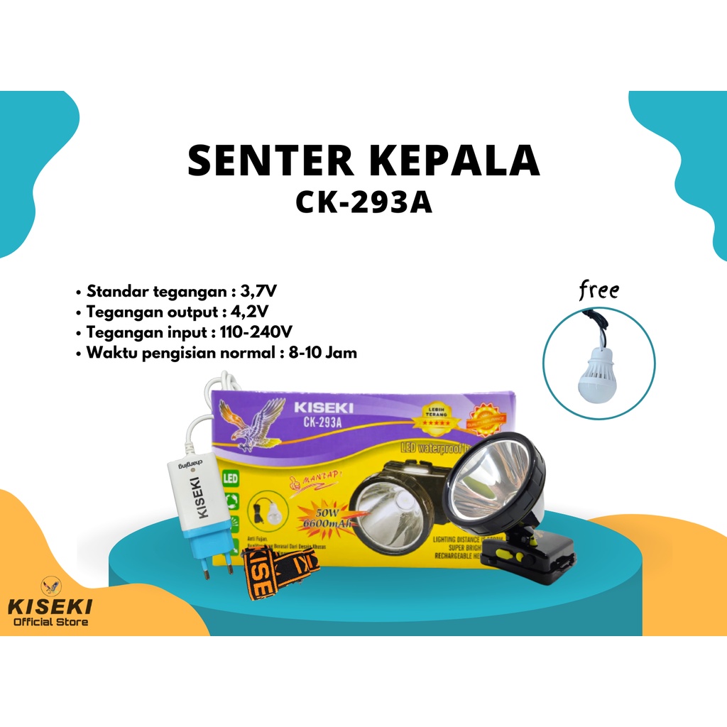 Kiseki Senter Kepala Ck-293A 50Watt | Headlamp Outdoor | Led Waterproof Cob Light | Cahaya Putih