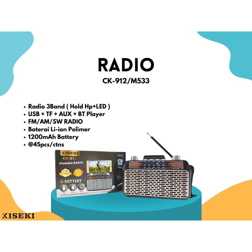 Kiseki Speaker Bluetooth CK-912/M533 Portable Radio 3Band ( Hold Hp+LED )