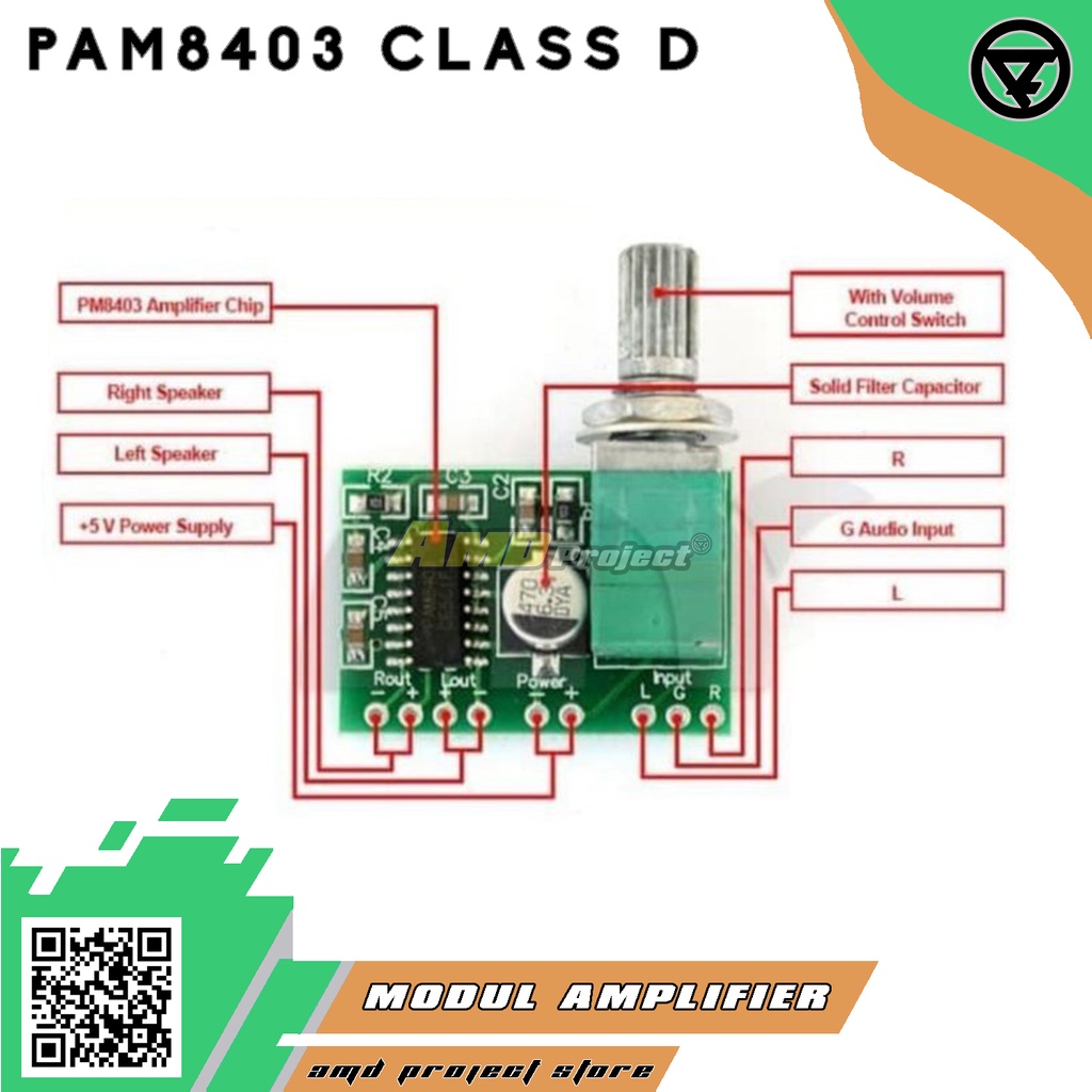 Kit Ampli PAM8403 Power Amplifier Class D Stereo Modul Board Potensio