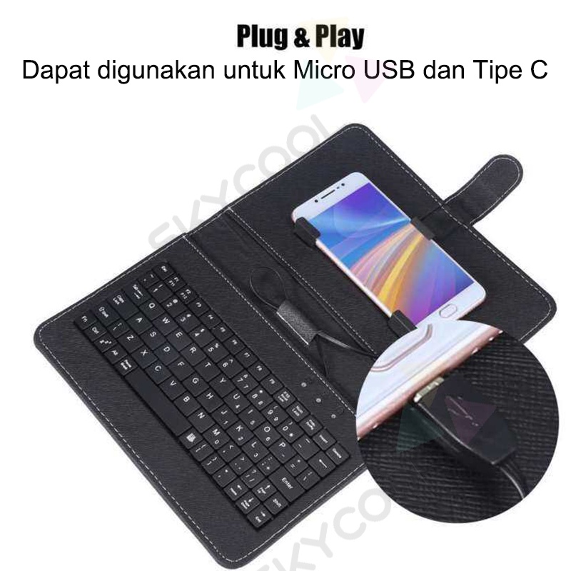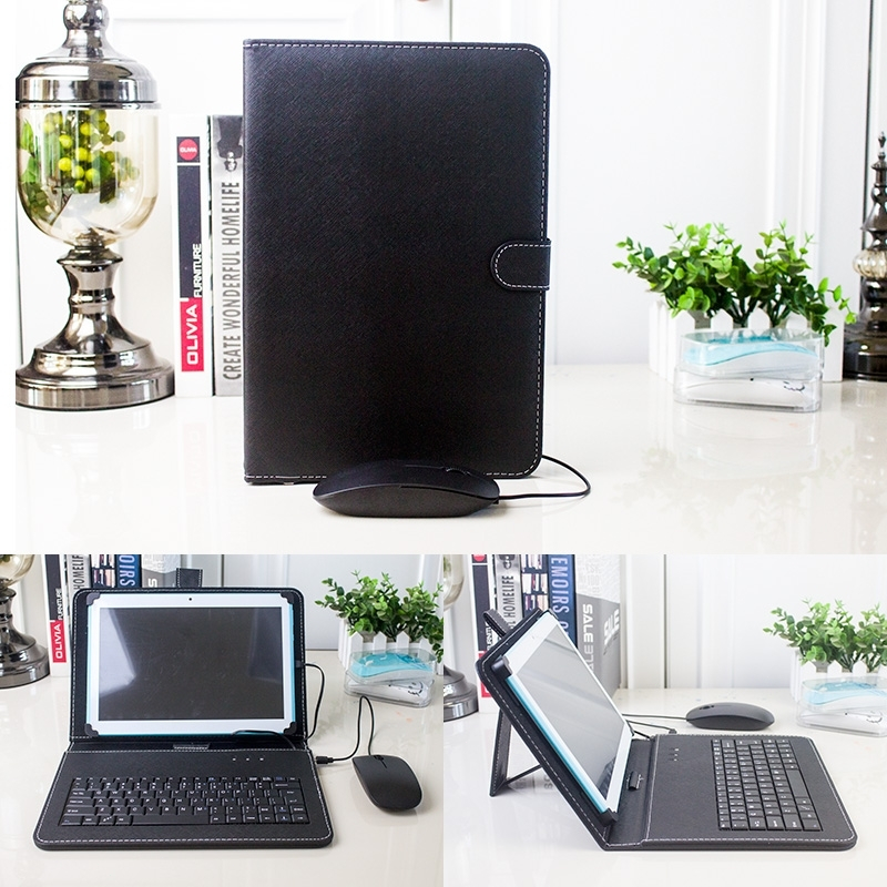 Kit Keyboard dan Mouse Berkabel untuk Tablet Ponsel Kompatibel Sistem OTG Android 4-8 Inci dengan Penutup PU Universal