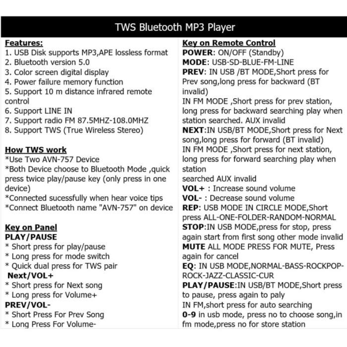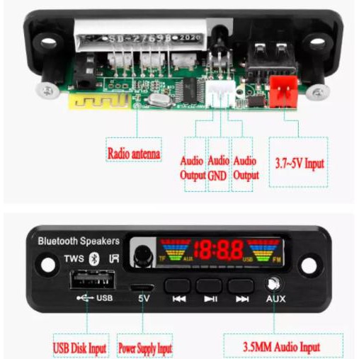 Kit Modul Bluetooth 5.0 Tws Mp3 Usb Lossless Player Fm Radio Remote