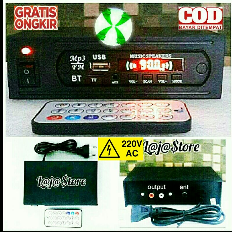Kit Modul Mp3 USB Bluetooth Mini Player AC 220 Volt Bonus Kabel RCA + Antena tanpa Power Amplifier