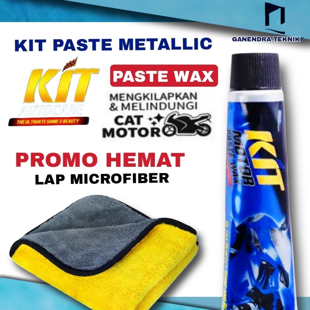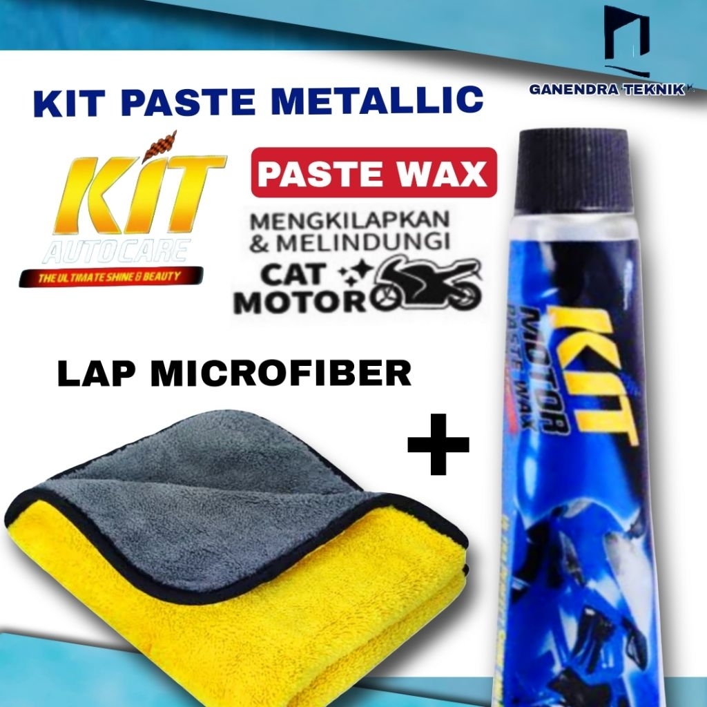 KIT PASTE WAX METALLIC 60GR - Pengkilap Body Metallic Motor - Kain Lap Microfiber Halus