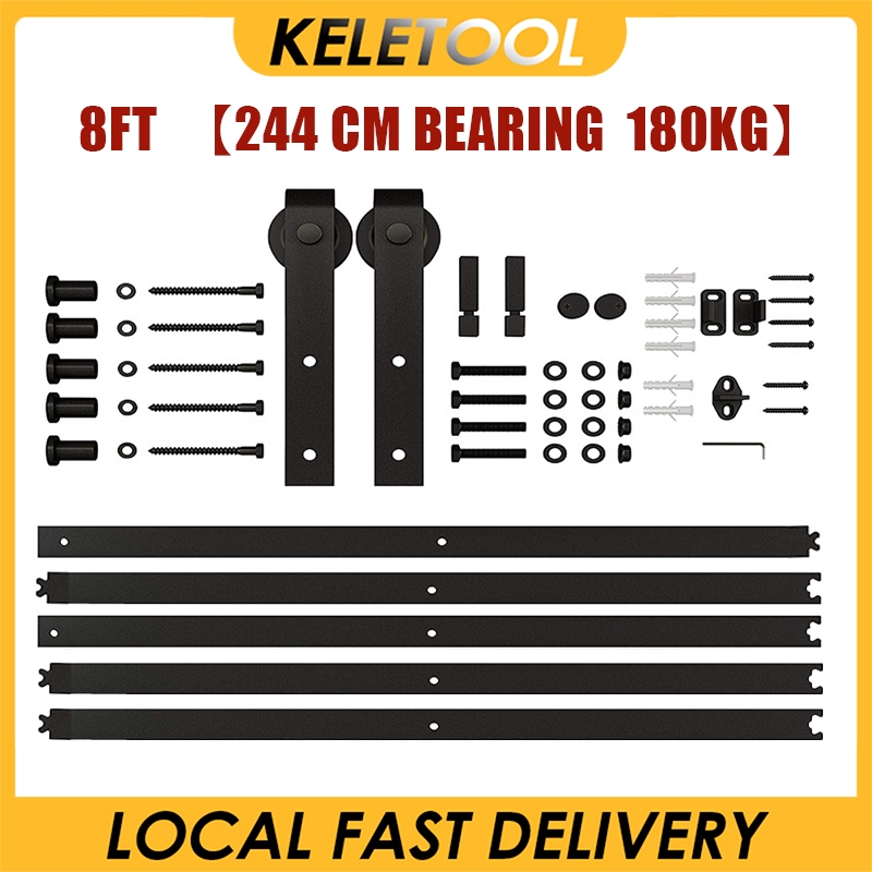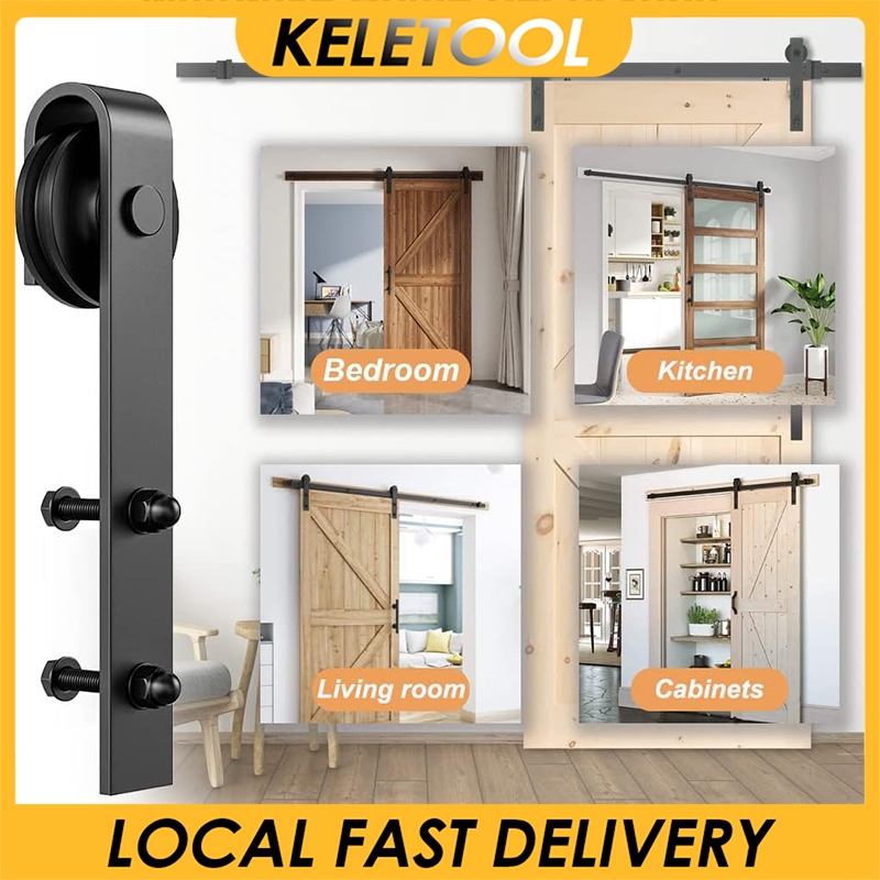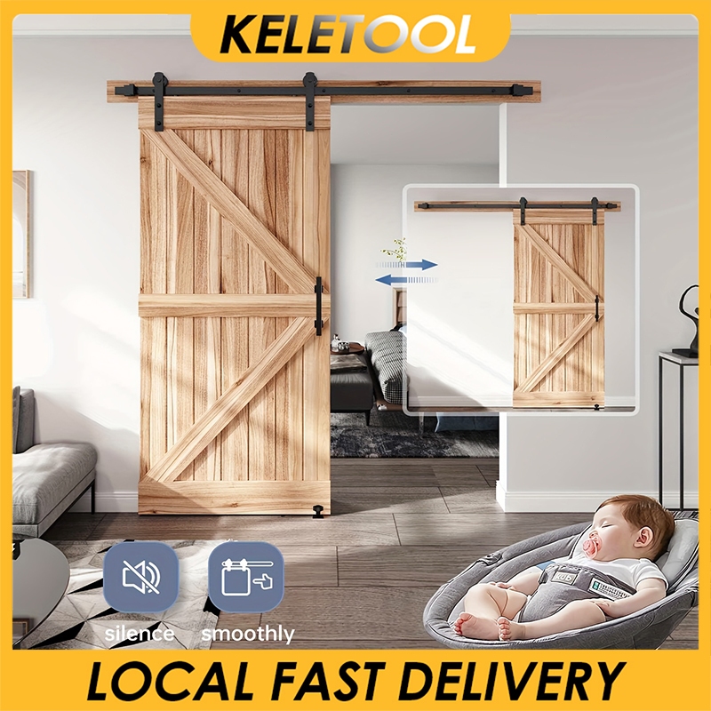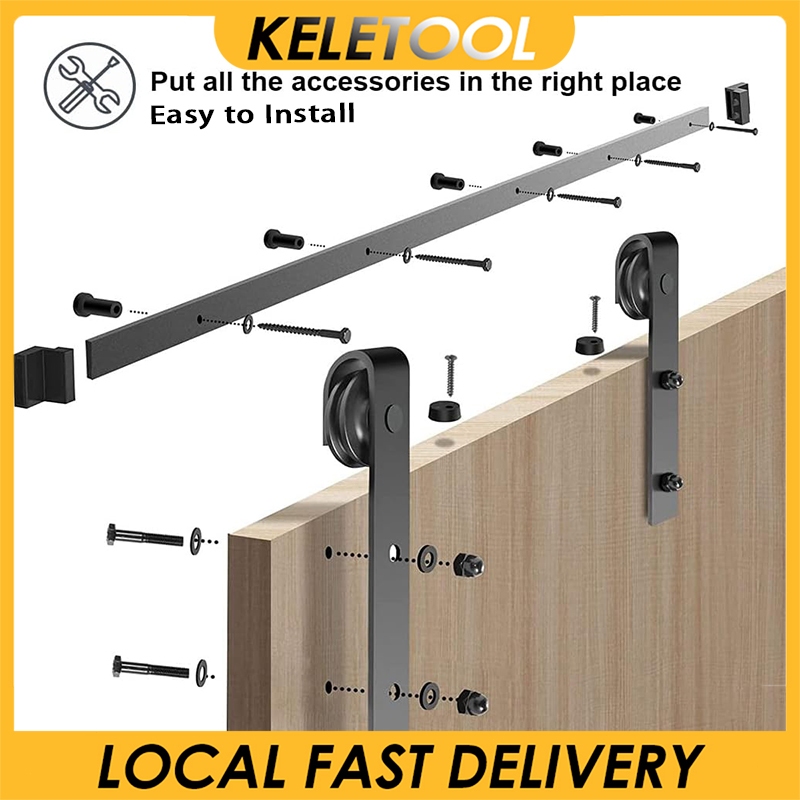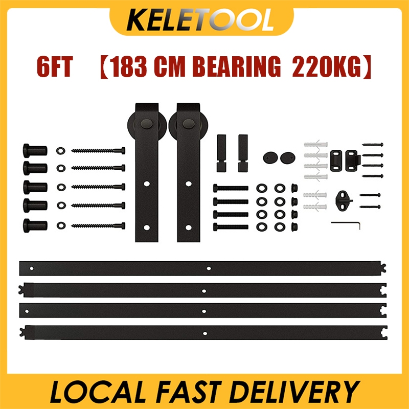 Kit Perkakas Pintu Gudang 6FT Kit Perkakas Pintu Gudang Geser Rel Pintu Gudang Halus dan Senyap Mudah Dipasang Manual Termasuk