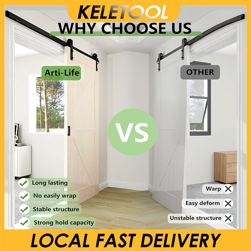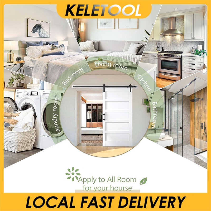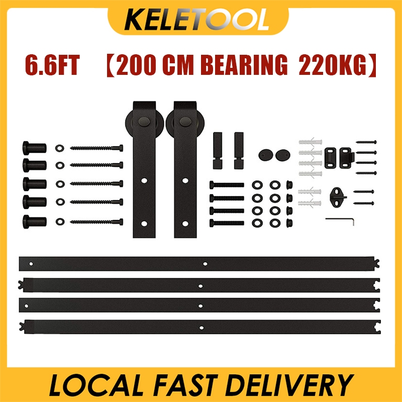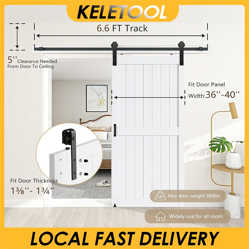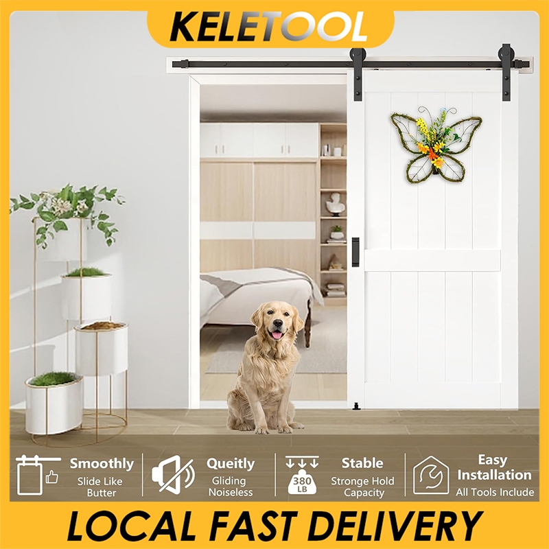 Kit Perkakas Pintu Gudang 6FT Kit Perkakas Pintu Gudang Geser Rel Pintu Gudang Halus dan Senyap Mudah Dipasang Manual Termasuk