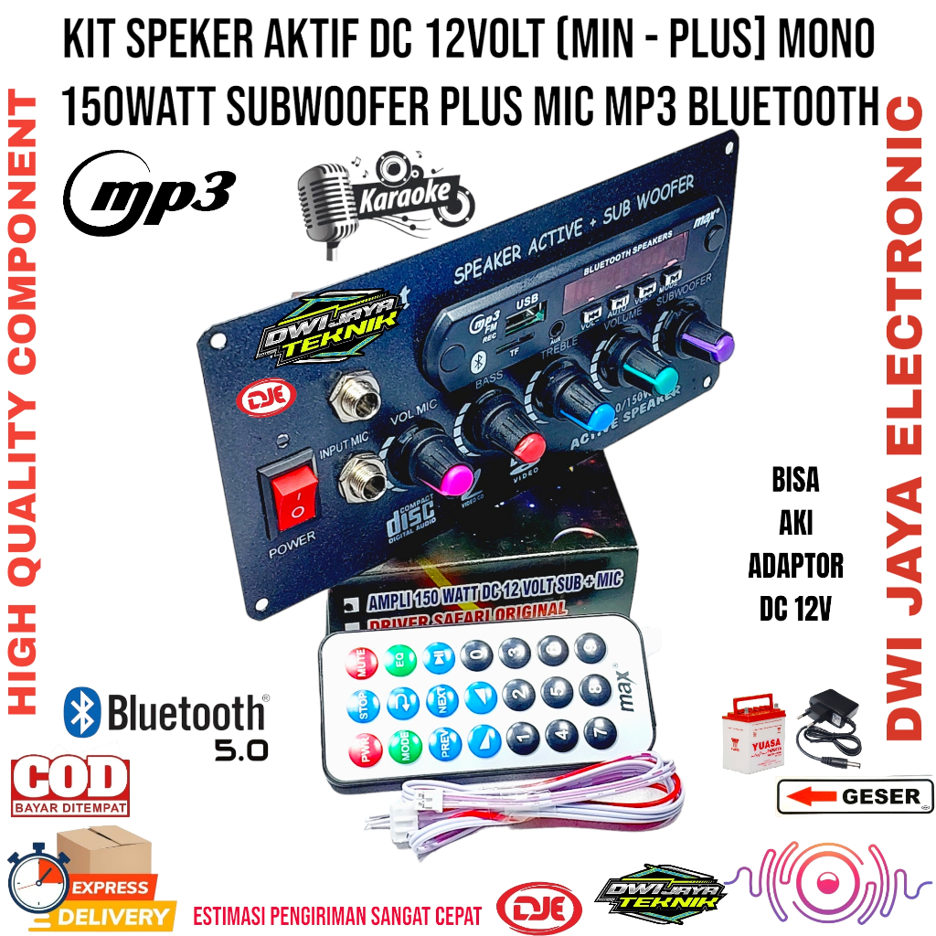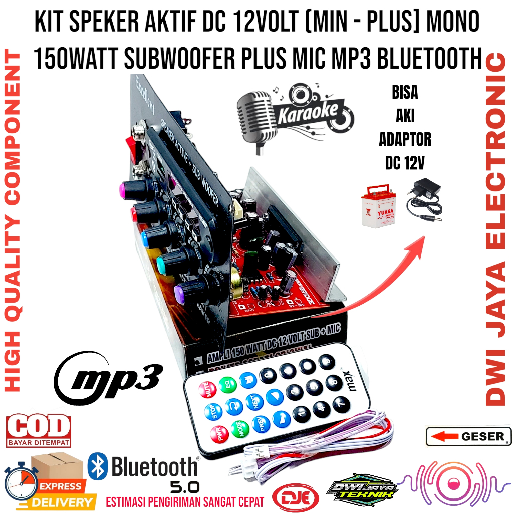 Kit Speker Active DC 12Volt Mono Subwoofer Mic Plus MP3 Bluetooth