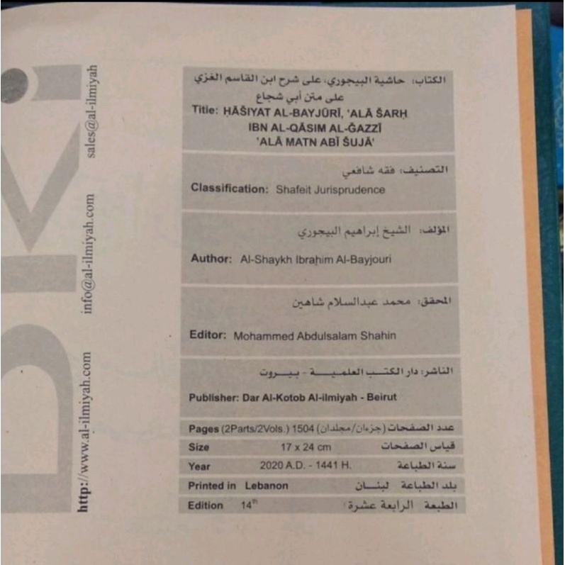 Kitab Hasyiah BAIJURI Hasyiyah Bajuri Kuning DKI Beirut
