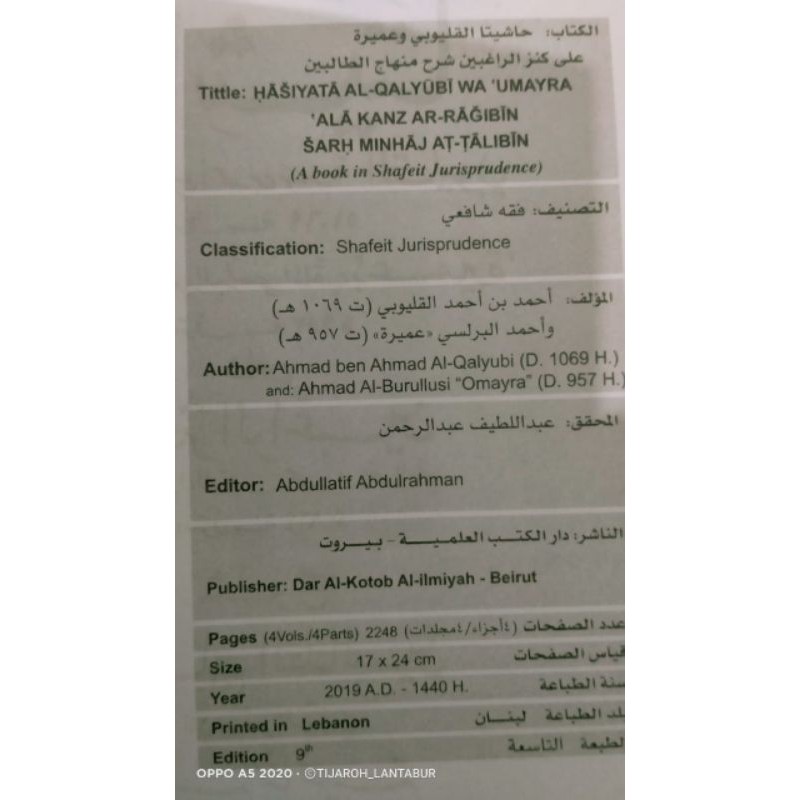 Kitab Hasyiyah Qalyubi Wa Umairah ( Mahalli ) 4 Jilid - Hasyiah Qulyubi - kertas putih - Buku Fiqih
