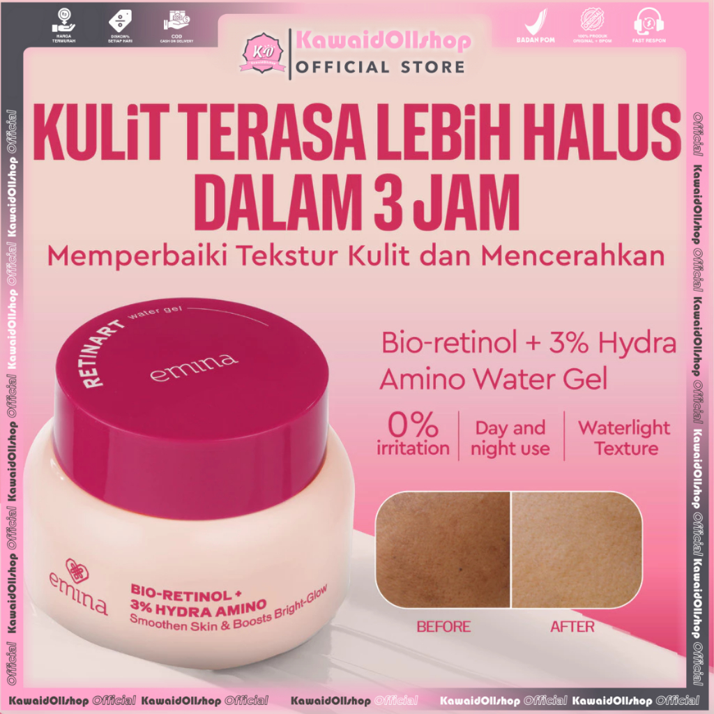 NEW! Emina Water Bio-Retinol Gel Moisturizer 30g - Moisturizer Anti Penuaan, Memperbaiki Tekstur Kulit, Menghaluskan kulit