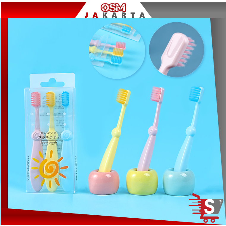 OSM JKT H5760 Sikat Gigi Anak 3 Pcs / Sikat Gigi Lollipop Dan Polos / Sikat Gigi 3 In 1 Warna Lucu / Sikat Gigi Pink Kuning Biru