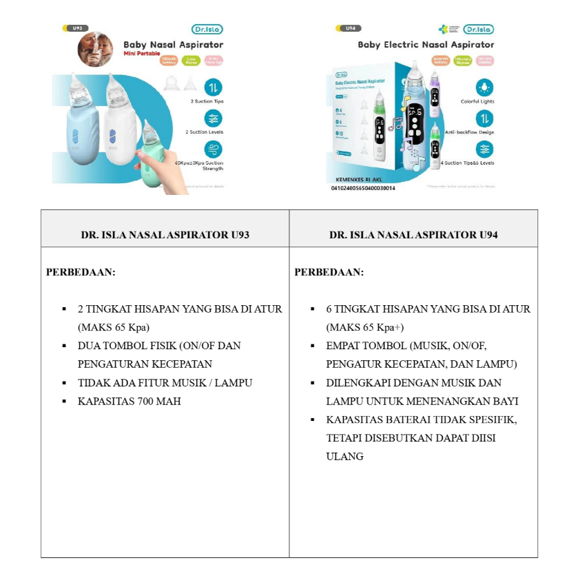 DR. ISLA U94 & U93 BABY ELECTRIC NASAL ASPIRATOR PORTABLE / NASAL ASPIRATOR U94+ PLUS WITH CASE / SEDOT INGUS HIDUNG BAYI NEWBORN