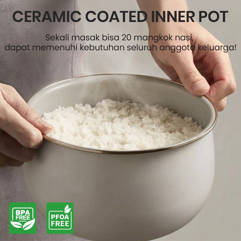 Mecoo Most Aesthetic Rice Cooker UltraWarmth 48H 1.8L Low Carbo Low Sugar 400 Low Watt Teflon Free