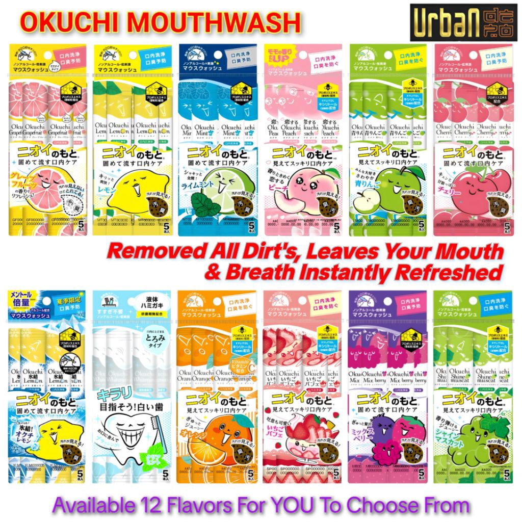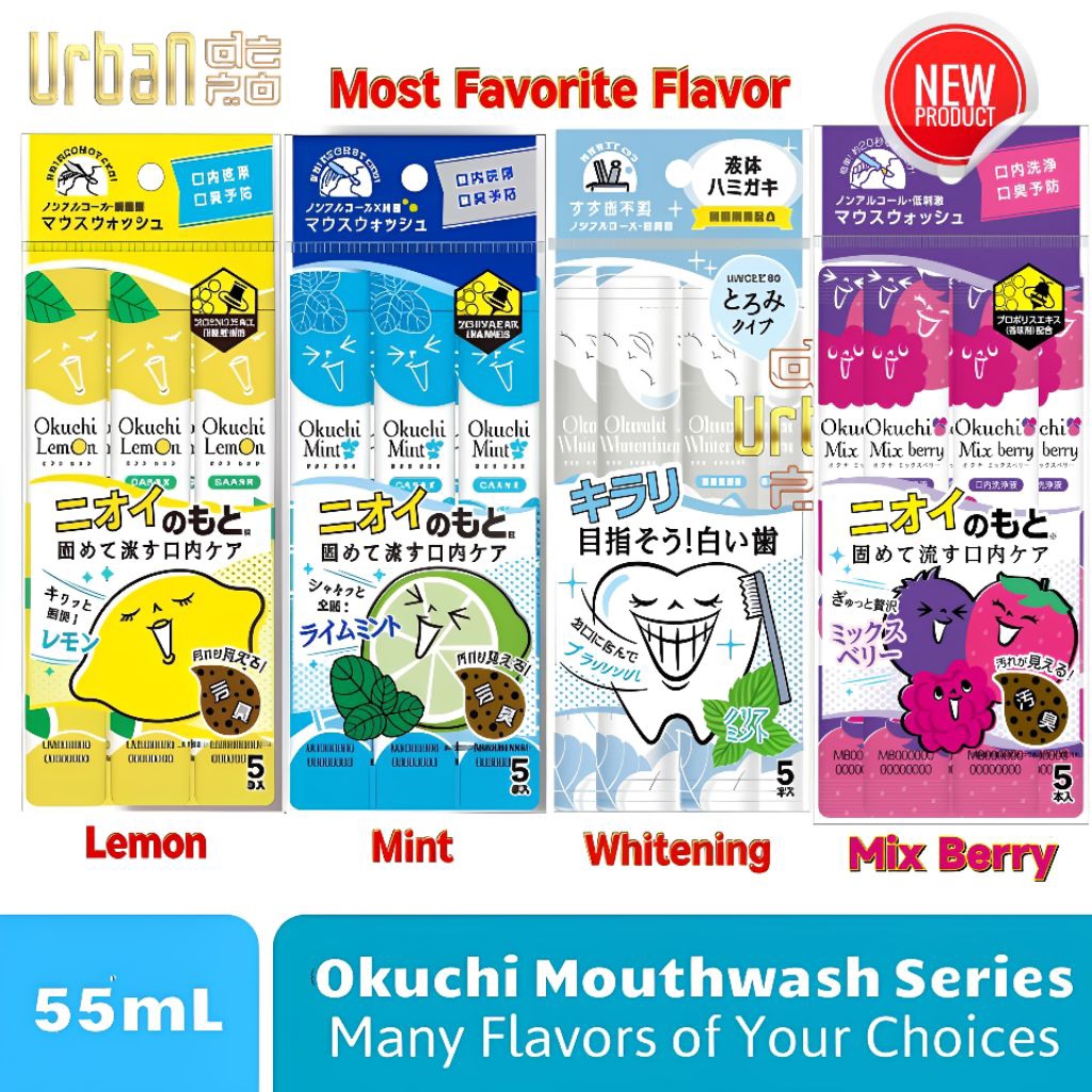 Okuchi Mouthwash Series All Types Set of 5 sachets per Pack 55ml - Original Japan