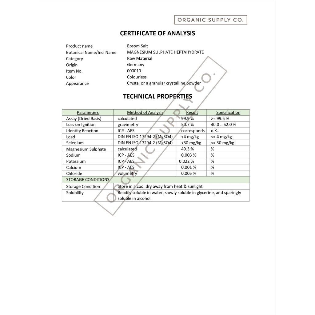 Epsom Salt | Magnesium, Pure Mineral Relief for Bath & Spa, Garam Epsom Sumbatan Asi, FCC Grade, Germany | Organic Supply Co.