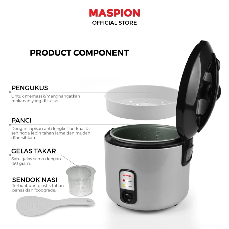 Maspion EX2081 - Rice Cooker Rumahan 2L 2 Liter / Magic Com Stainless Steel 2Liter EX 2081