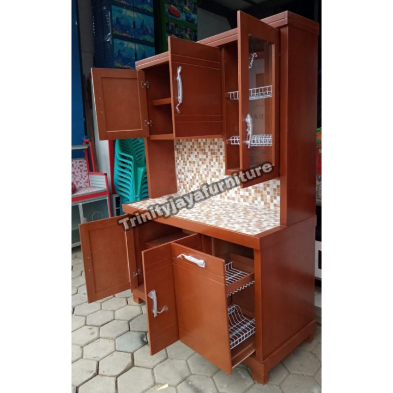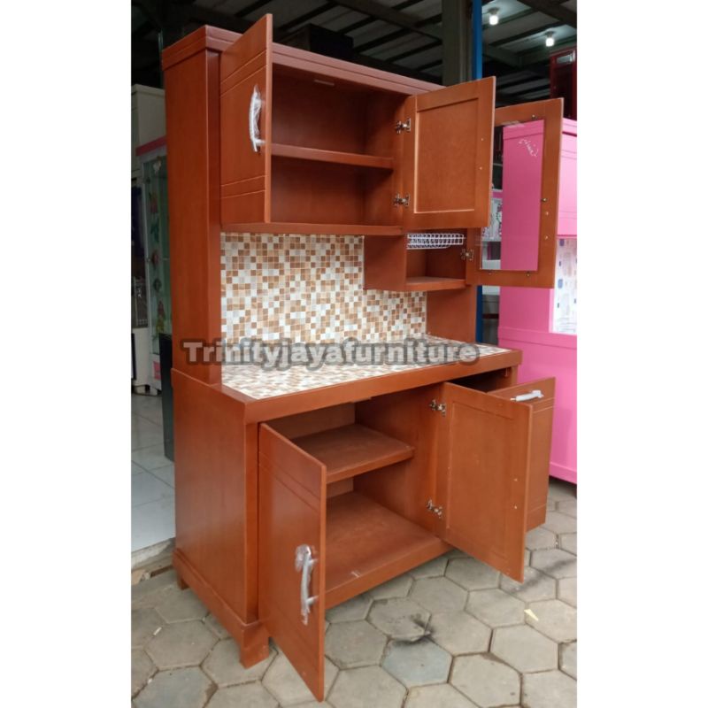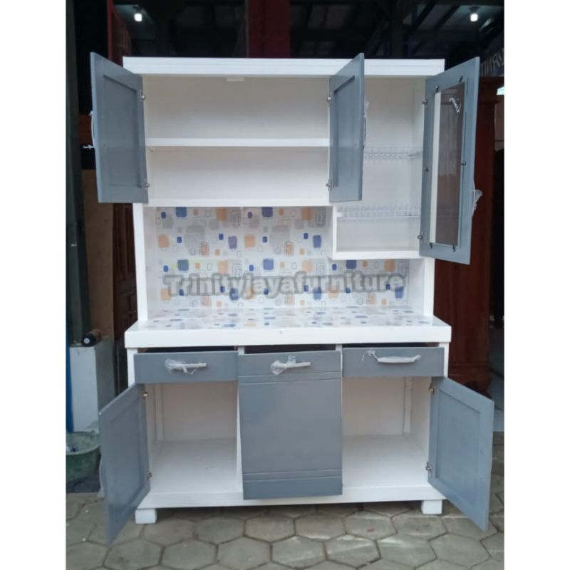Kitchen Set - Lemari Piring 3 Pintu / Lemari Sayur / Lemari Dapur Minimalis / Lemari Piring / Lemari Makan / Lemari Rak Piring / Kabinet Dapur Kayu Keras Tahan Air Finishing Duco