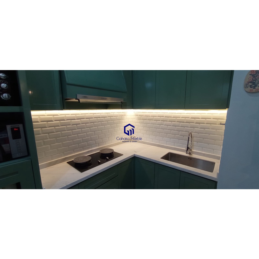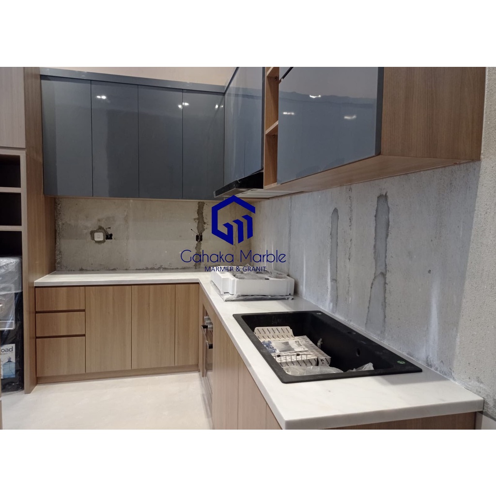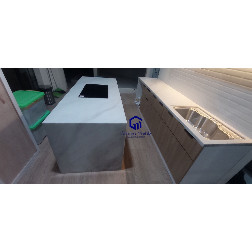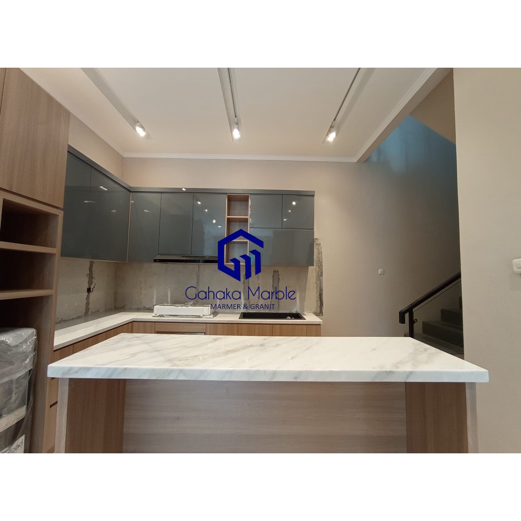 Kitchen Set Table | Bianco Alexander Marble | Marmer Import | Marmer Slab | White Marble