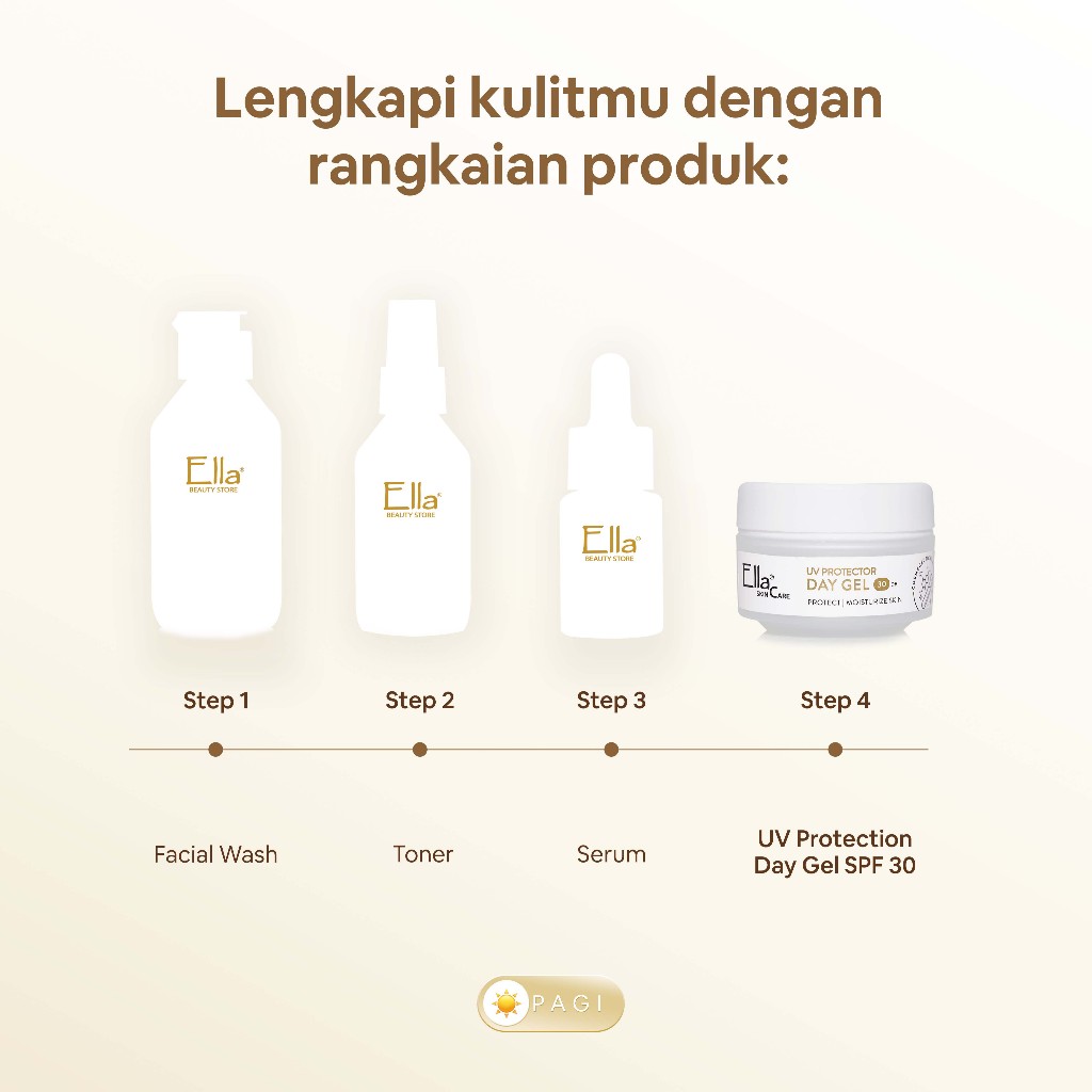 Ella Skincare UV Protector Day Gel DB SPF 30 Protect and Moisturize Skin - Tabis Surya sekaligus Pelambab Kulit Wajah untuk Pagi dan Siang serta cocok untuk type kulit mudah Iritasi, Berminyak dan Berjerawat