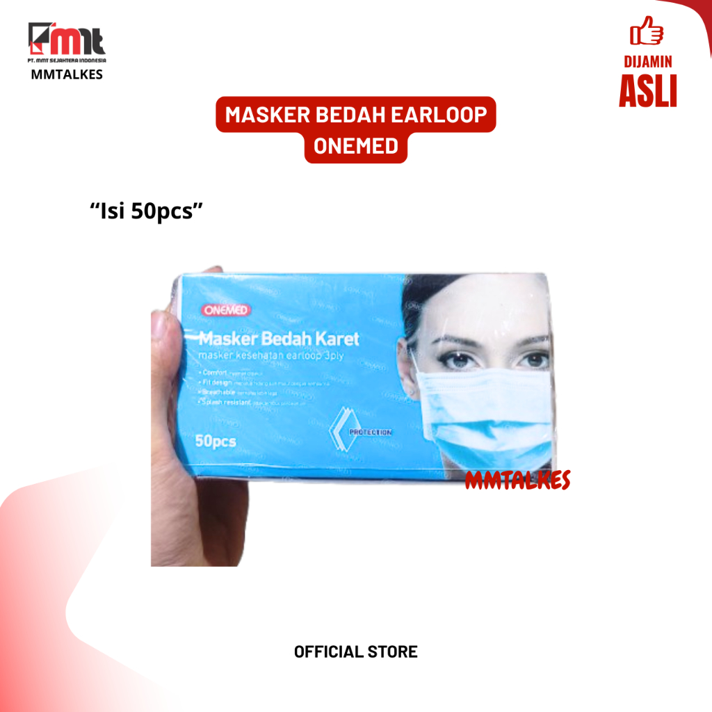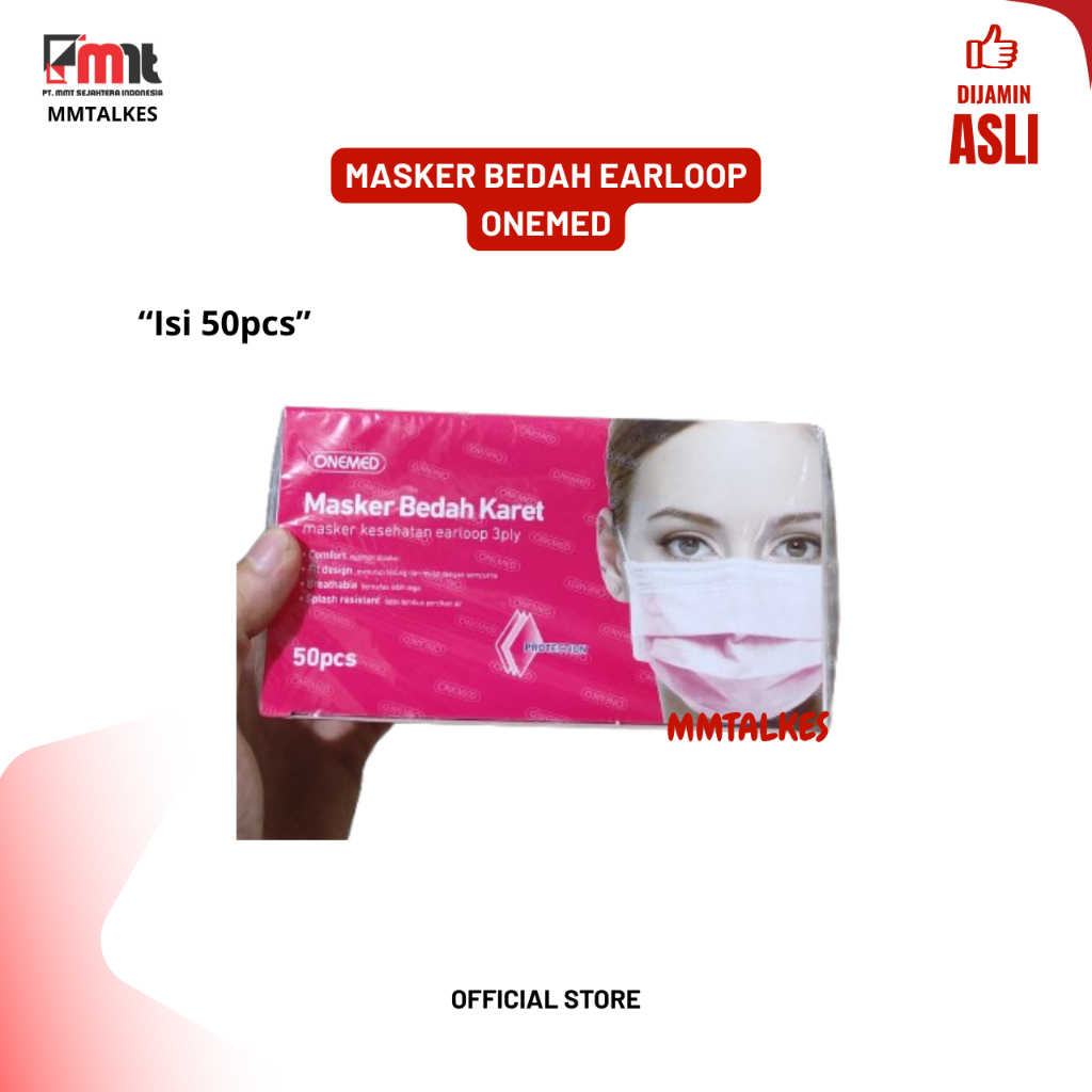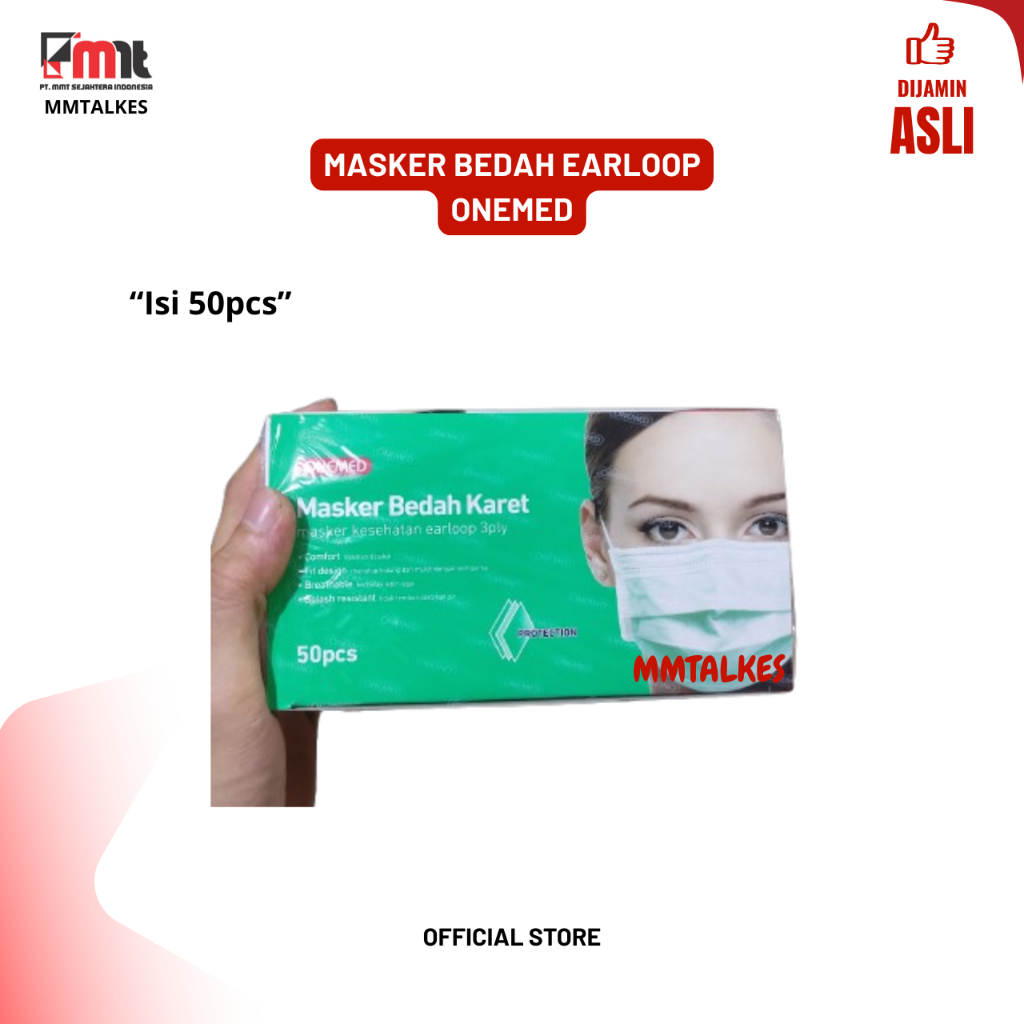 MASKER MEDIS EARLOOP ONEMED 3PLY BEDAH KARET WARNA