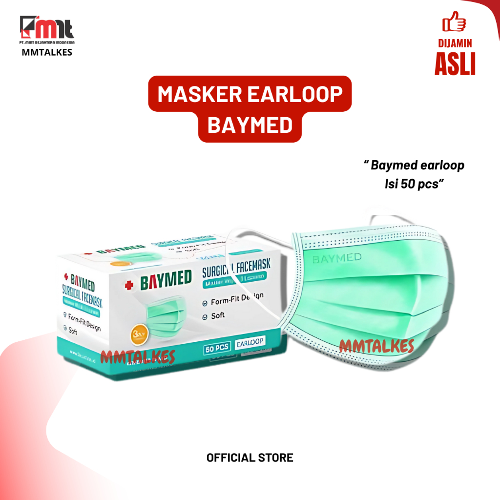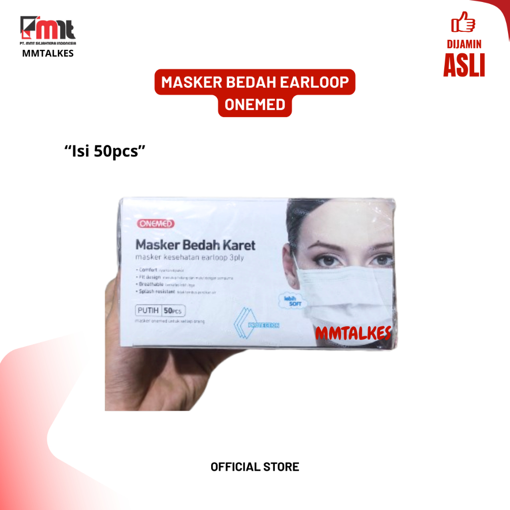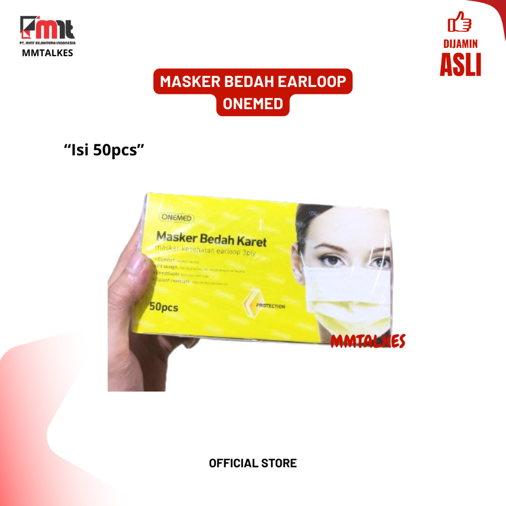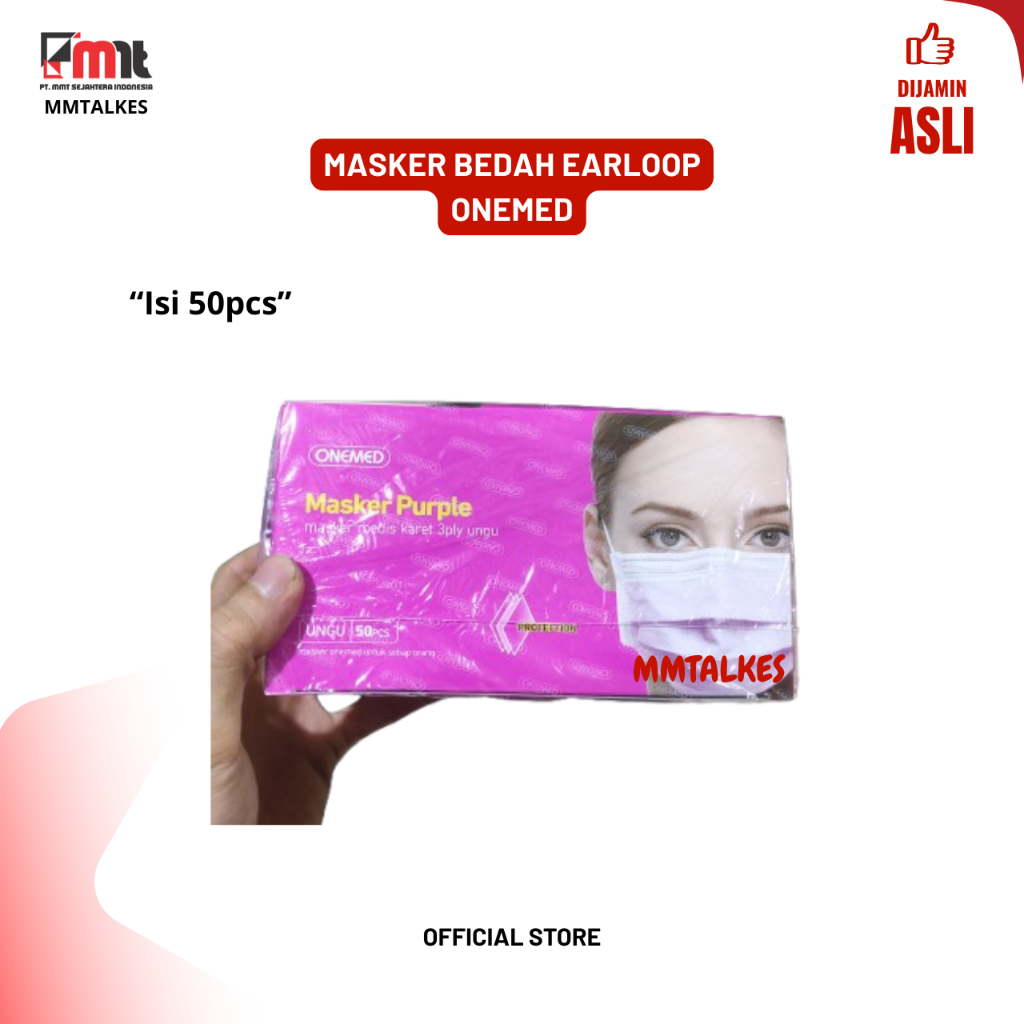 MASKER MEDIS EARLOOP ONEMED 3PLY BEDAH KARET WARNA