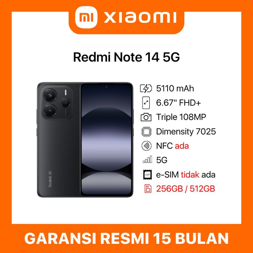 Xiaomi Redmi Note 14 5G 8/256 12/512 8/256GB 12/512GB 8GB 12GB 256GB 512GB Garansi Resmi