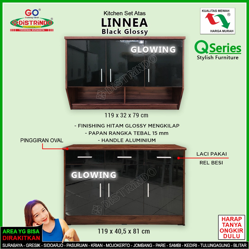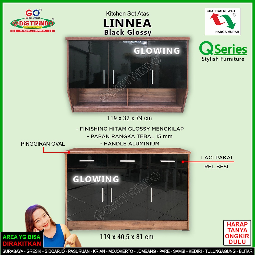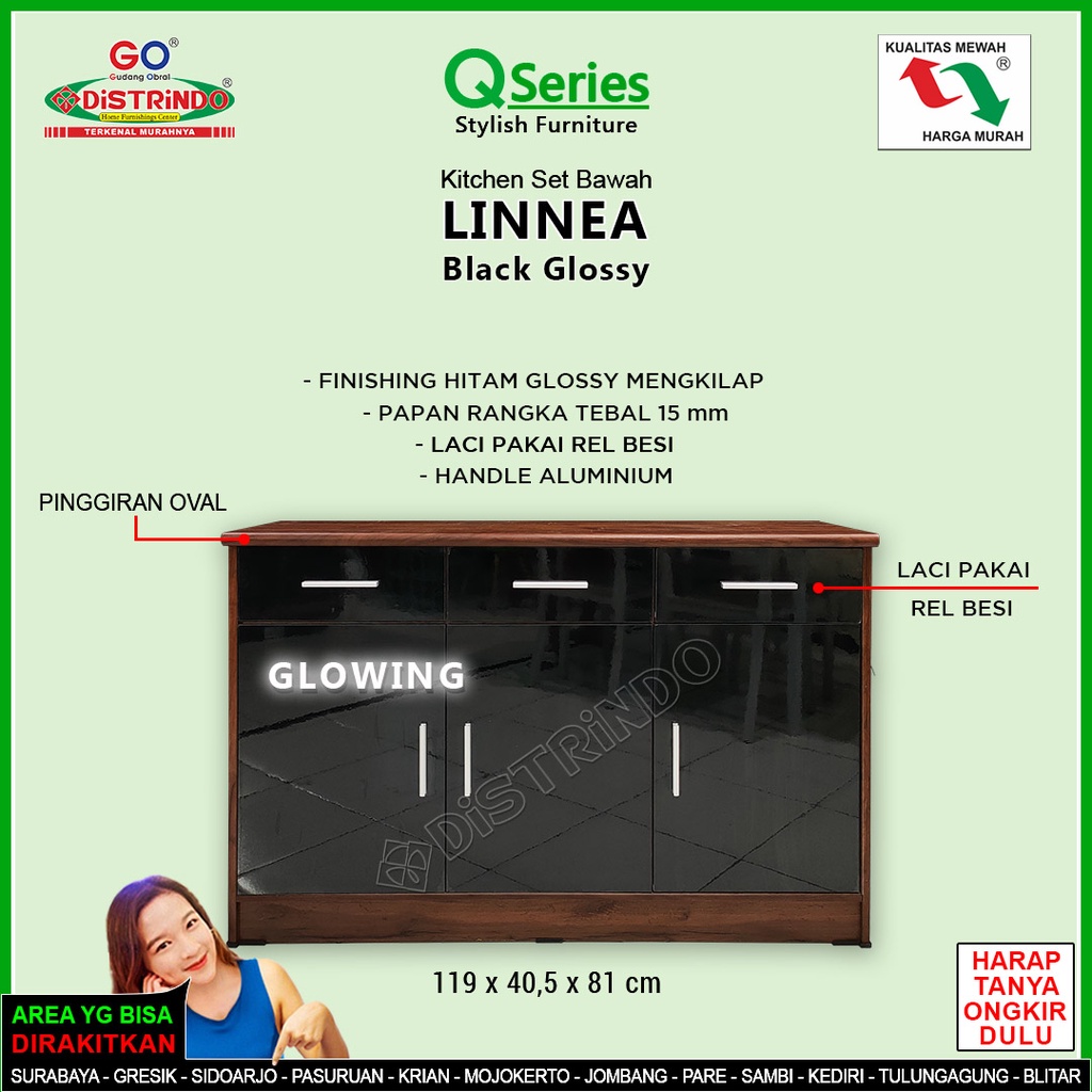 Distrindo - Kitchen set/ Lemari Dapur 3 Pintu HITAM GLOWING Stylish Rangka Tebal 15mm Laci Pakai Rel