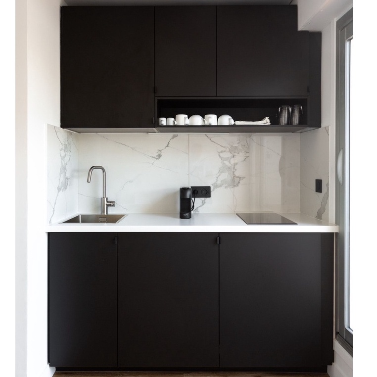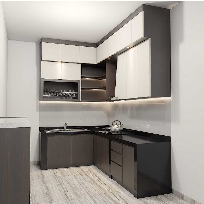 Kitchen set lemari dapur / wardrobe pakaian / dipan ranjang / kitchen island table / meja makan / bar table / backdrop dan rak TV / panel HPL custom furnitur interior desain design
