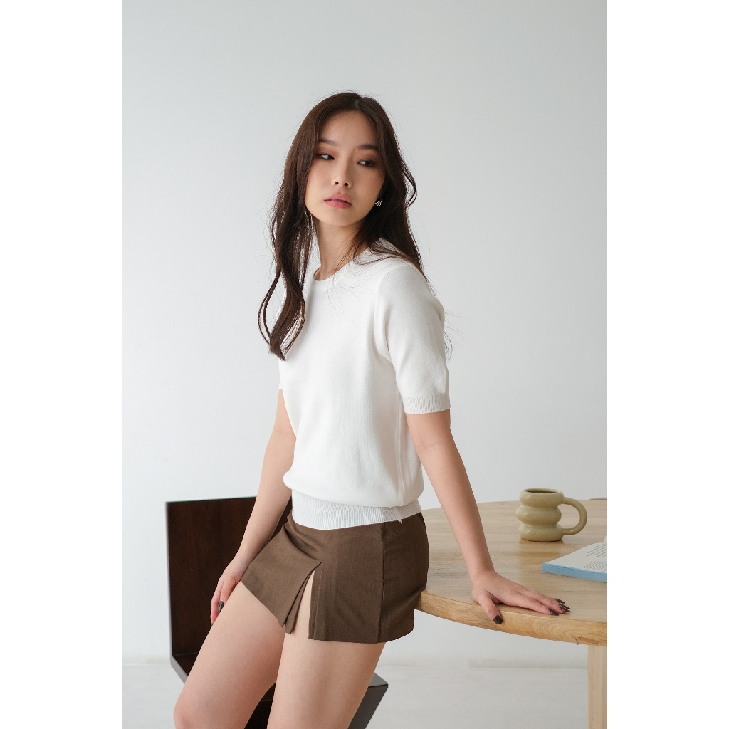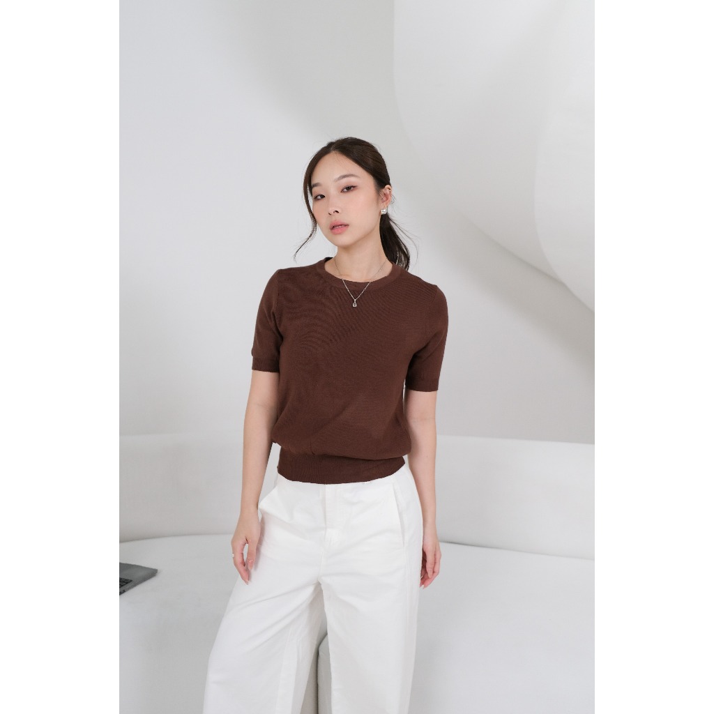 Kiyorawears - SIGNATURE | Iun Knit Top / Kaos Lengan Pendek / Casual Blouse / Atasan Wanita / Baju Atasan Wanita Terbaru / Baju Santai / Atasan Basic Wanita Kekinian / Korean Style