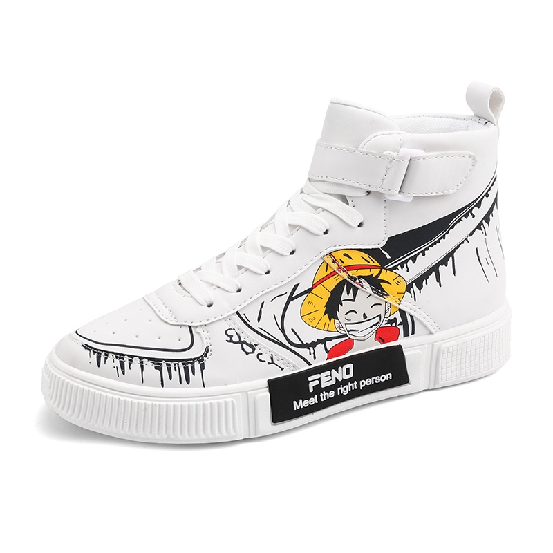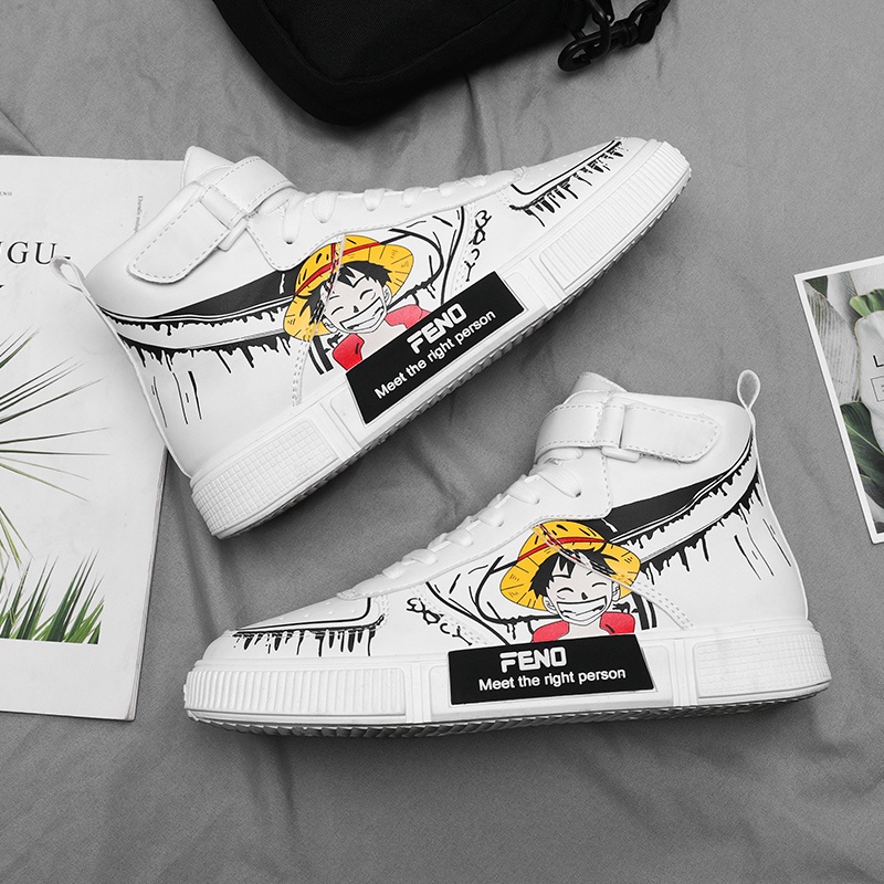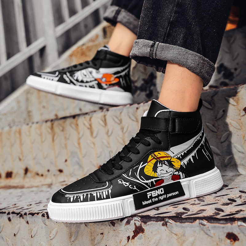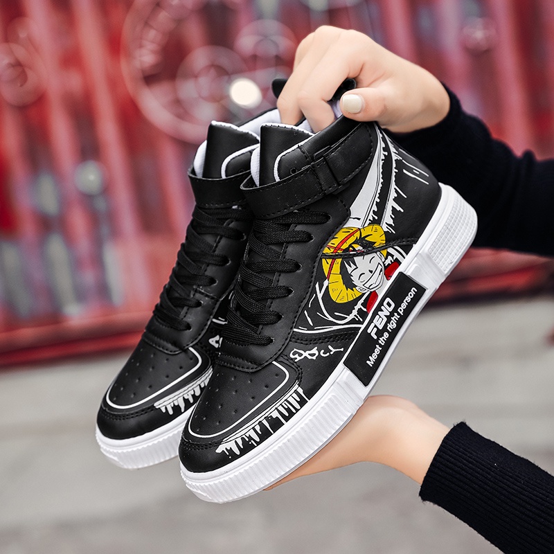 Klasik Anime One Piece Monkey D Luffy Sepatu Import Pria Sneaker Hitam Putih Tinggi Keren Nyaman Kuliah Sports Lentur Ringan 215