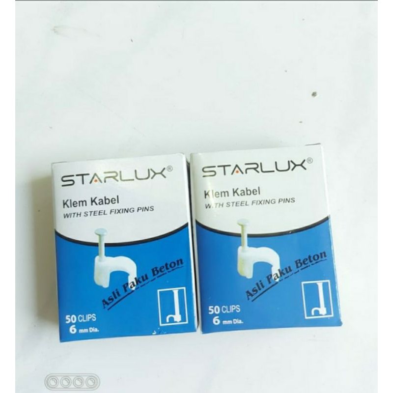 Klem Kabel 6mm Paku Beton Asli STARLUX ( 50 Clips) Cleam Cable