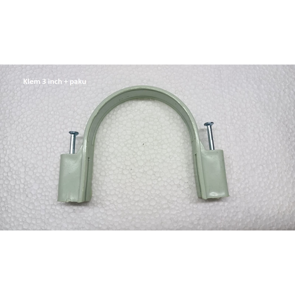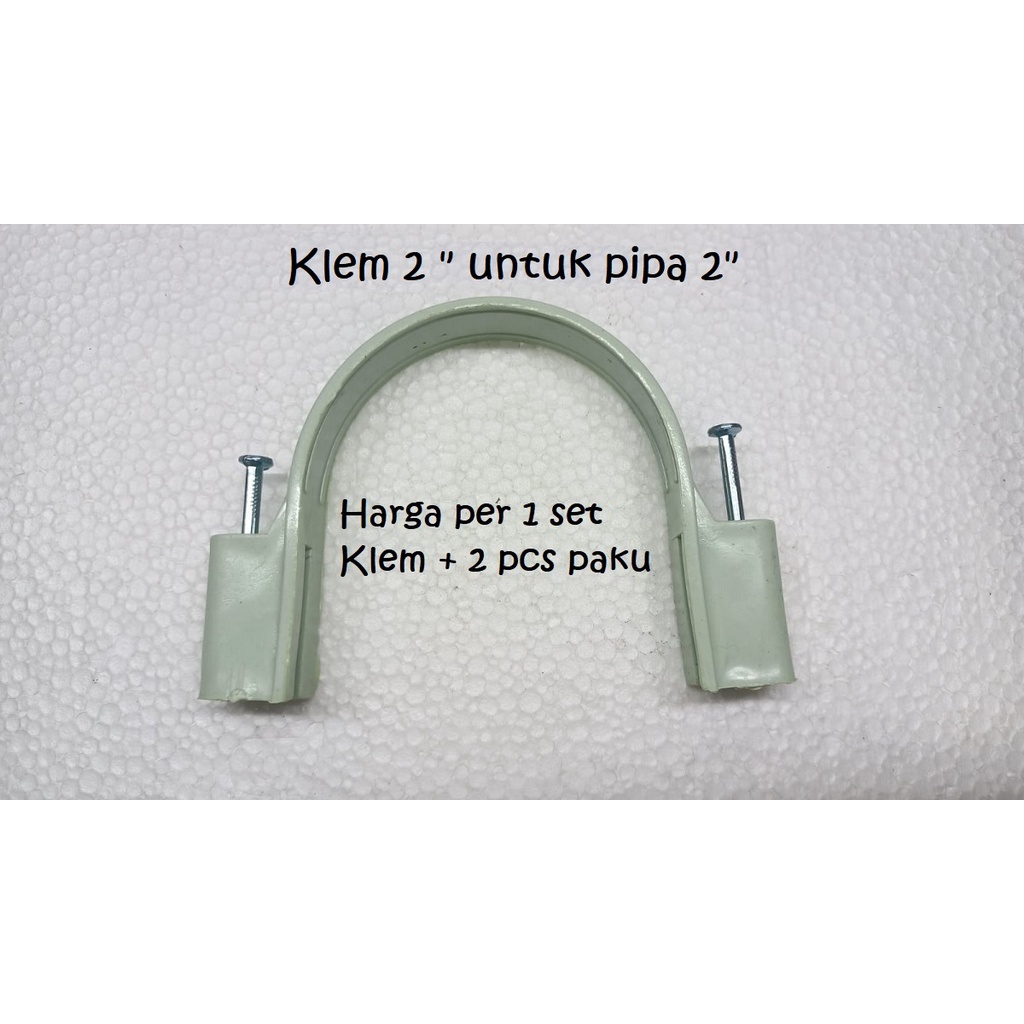 Klem clamp Pipa PVC ada pilihan 2" 3" dan 4" 2 3 4 in inch pegangan bracket corong pembuangan talang bisa untuk semua merk pipa : pralon paralon rucika wavin triliun intilon vinilon champion maspion langgeng supralon maspion6 maspion8 langgeng6 langgeng8